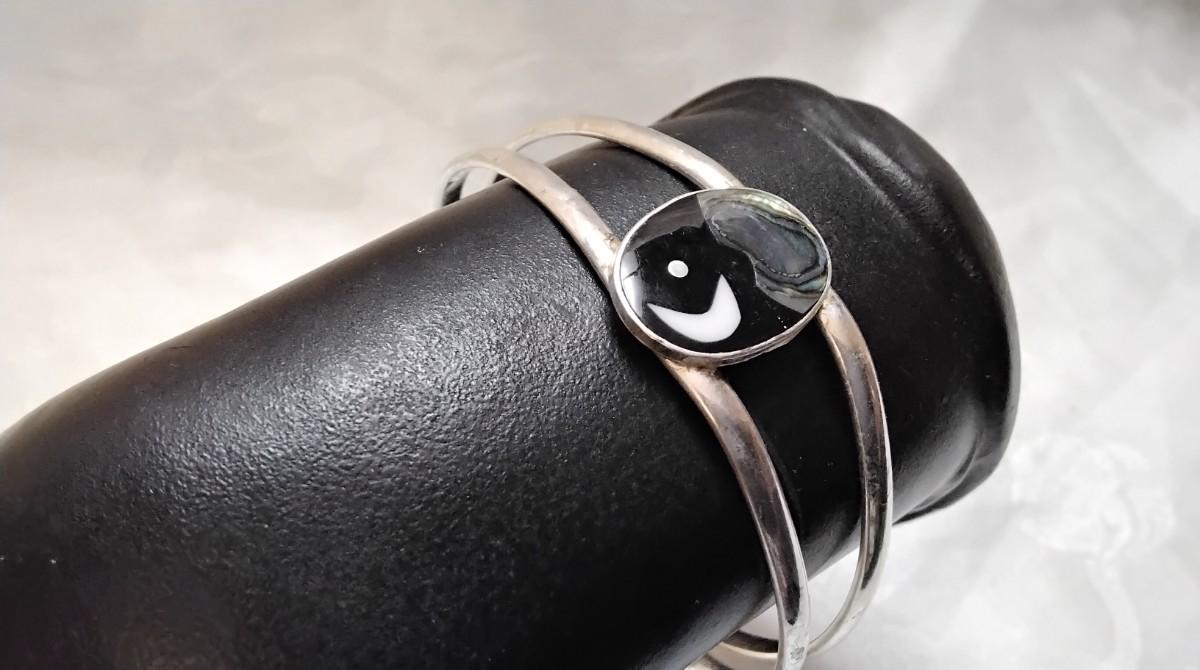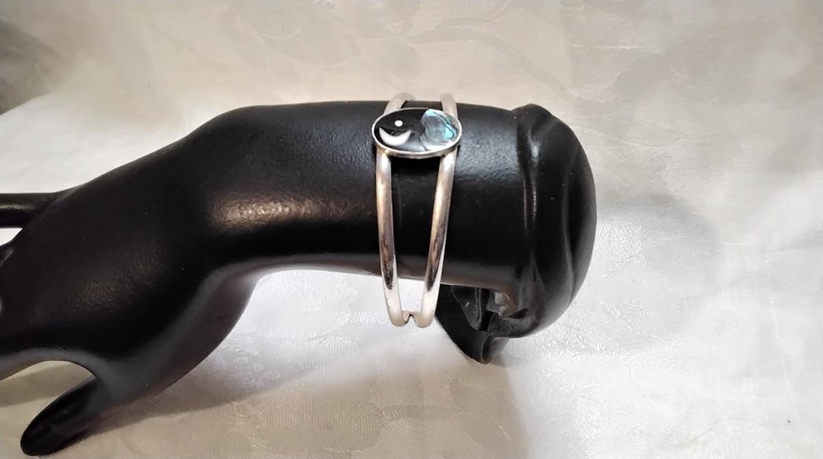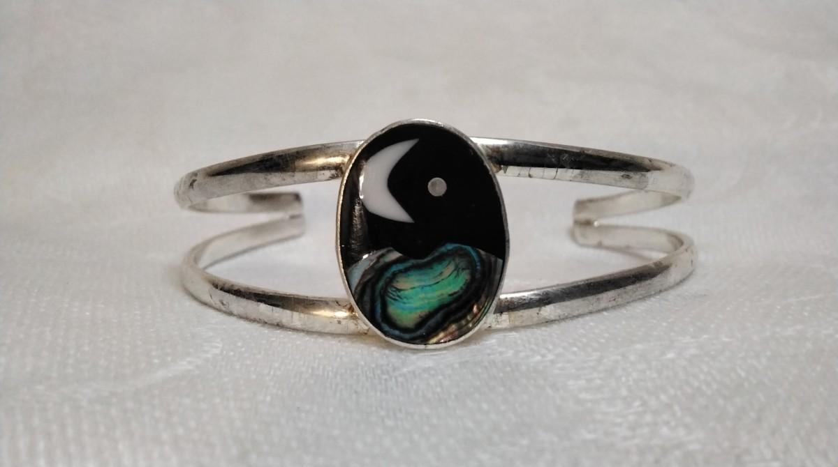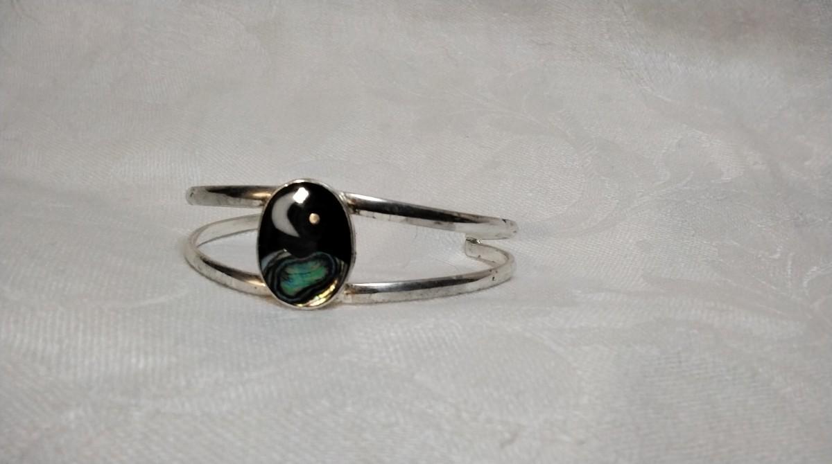 Unique Onyx/Mother of Pearl/Abalone Alpaca Silver Bracelet