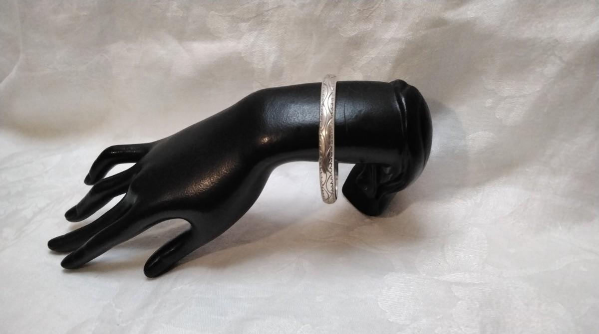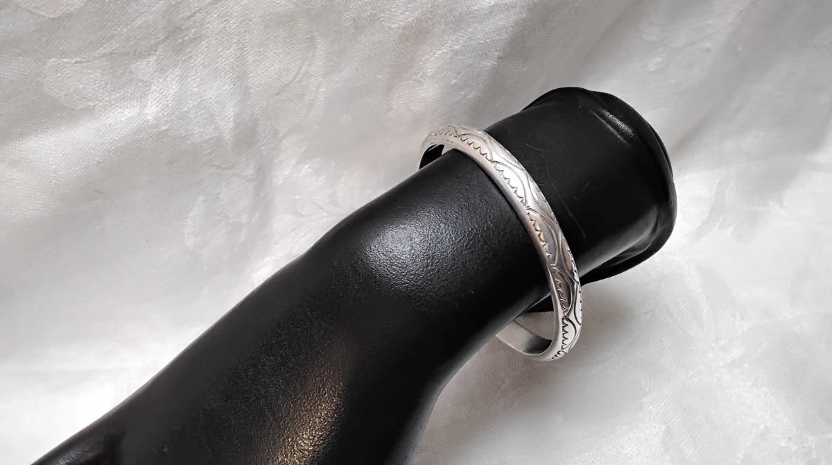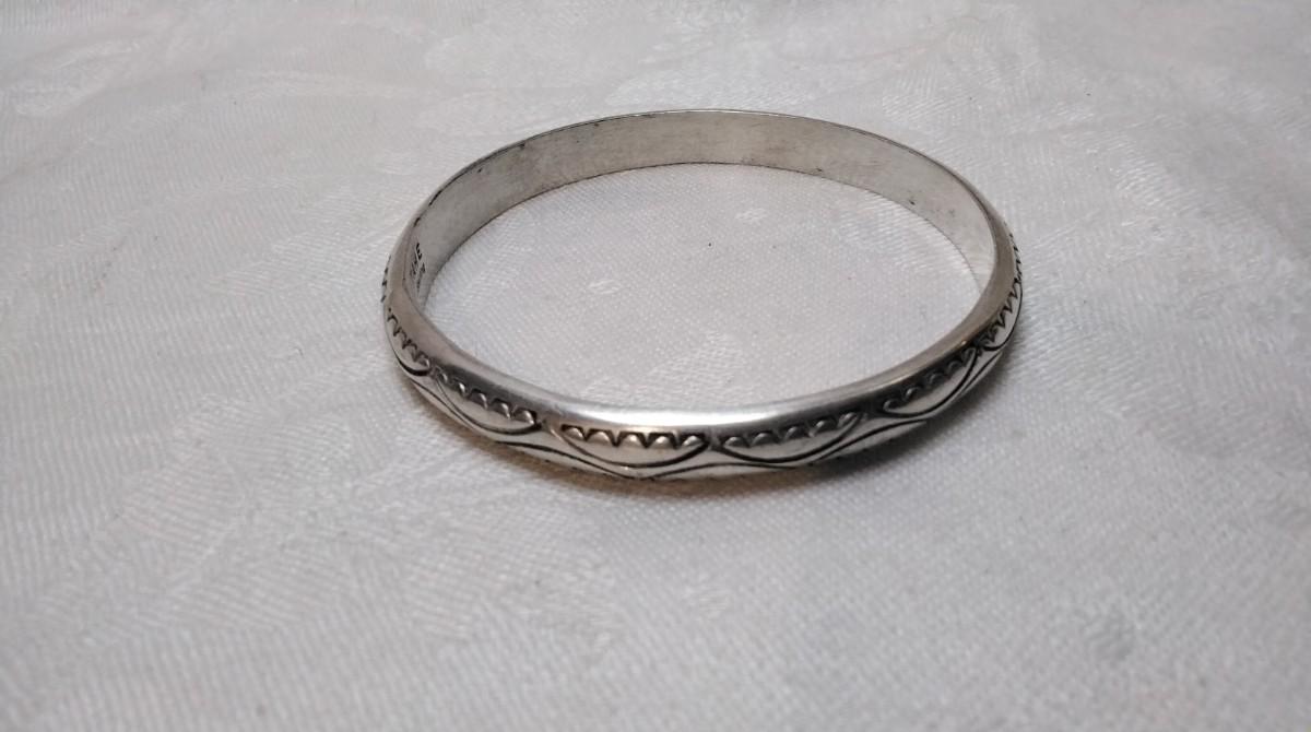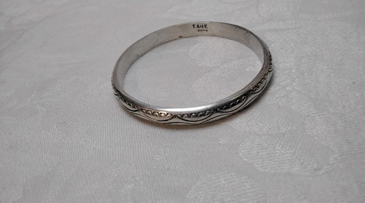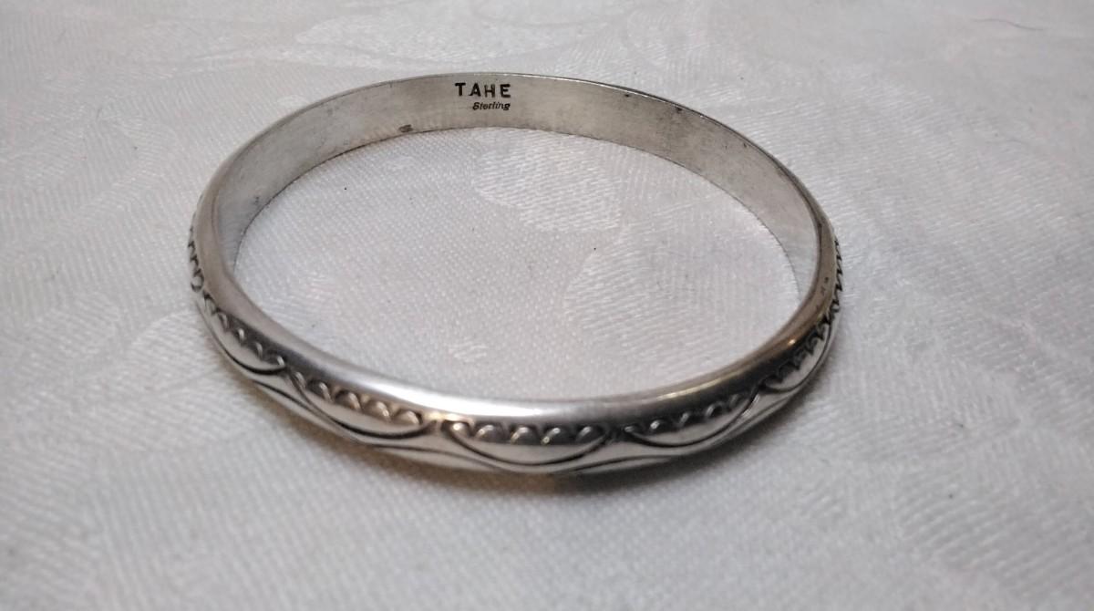 Some of the top Silversmiths in American Native jewelry the Tahe family is well know for their heavy handmade Navajo silver bracelets. Their pieces have remained sound investments since the 1950s. 2.5"