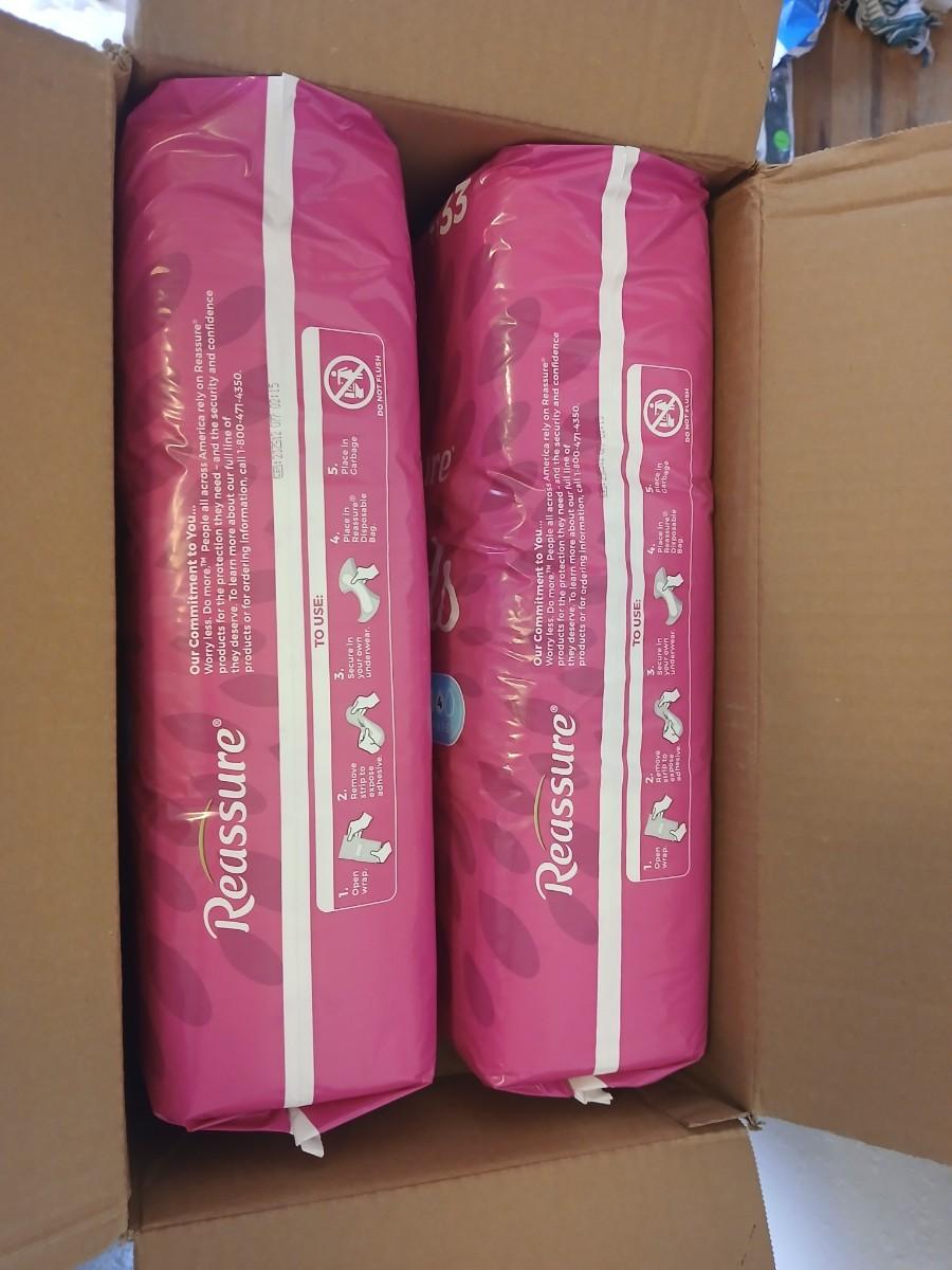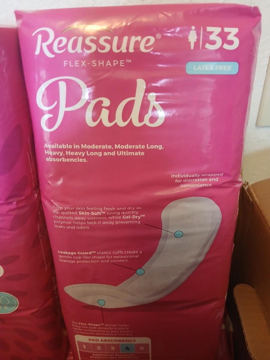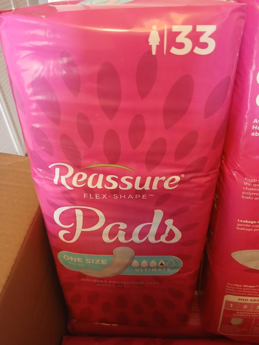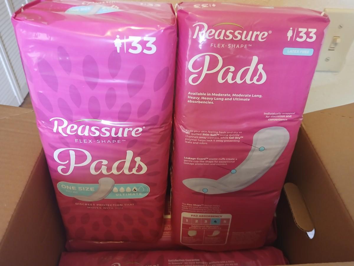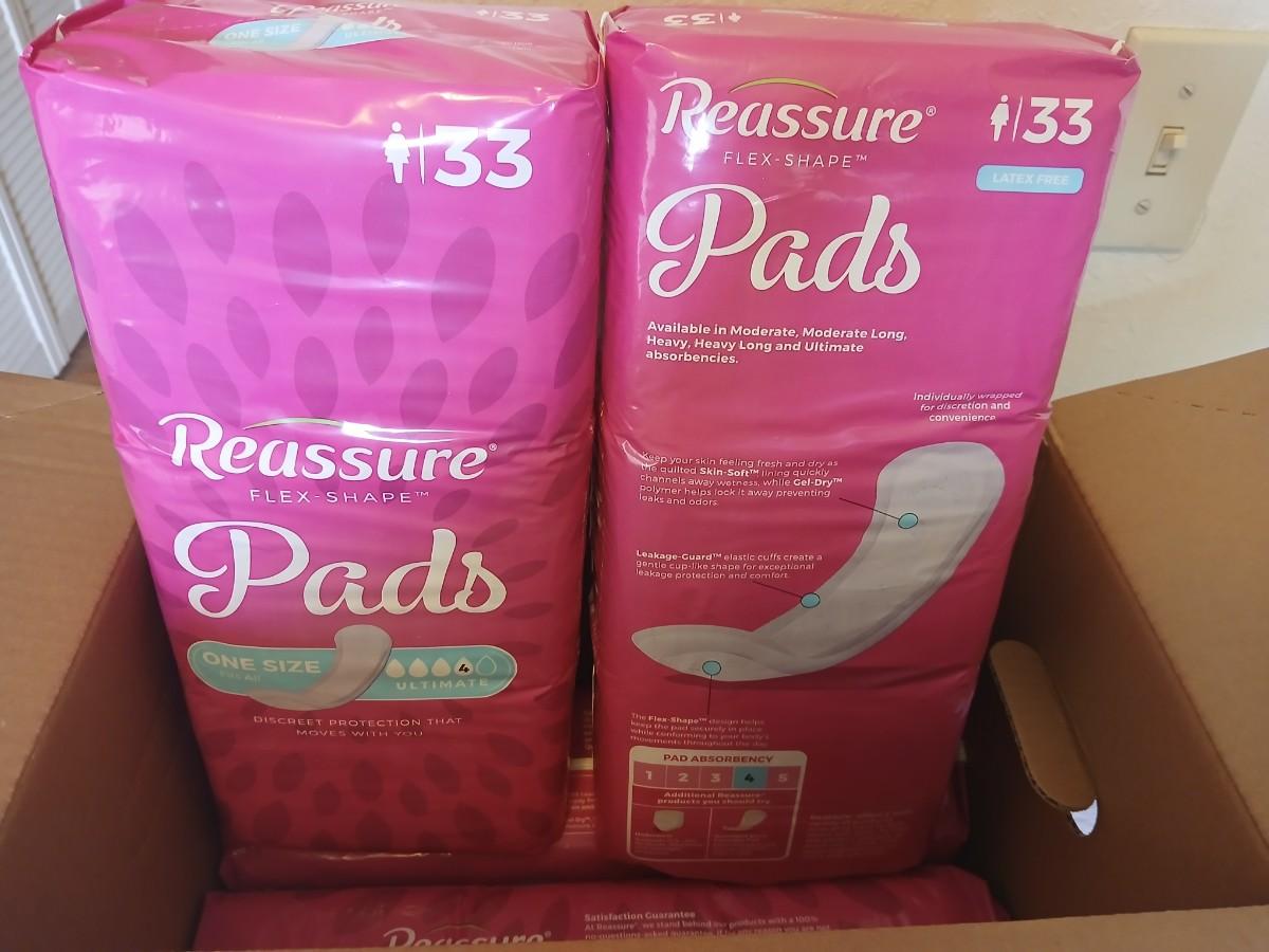 Brand new box of four 33 count latex free Reassure flex shape pads - 132 total in unopened bags