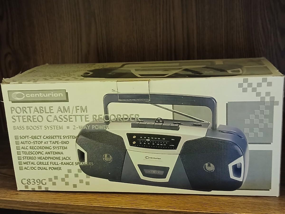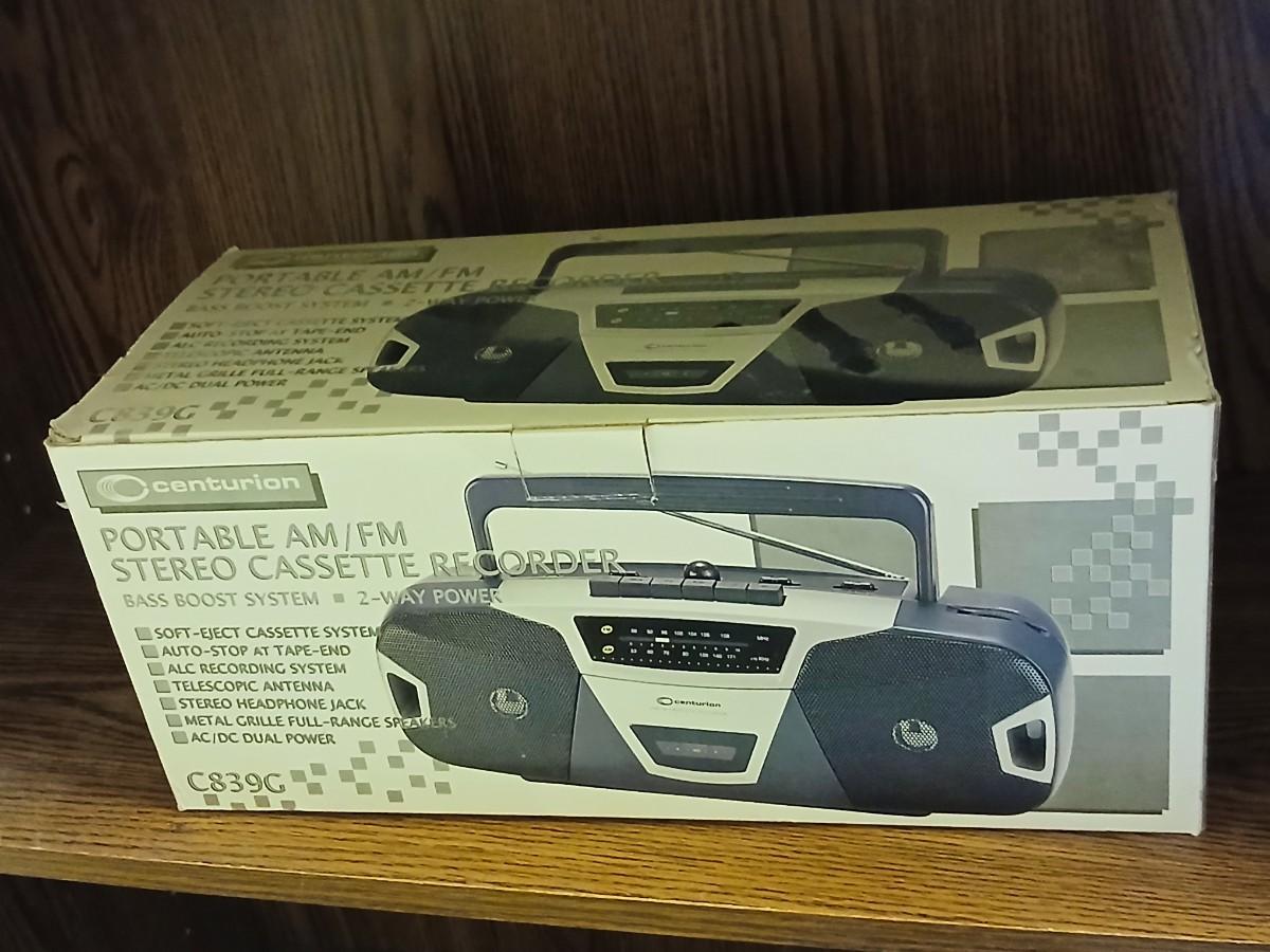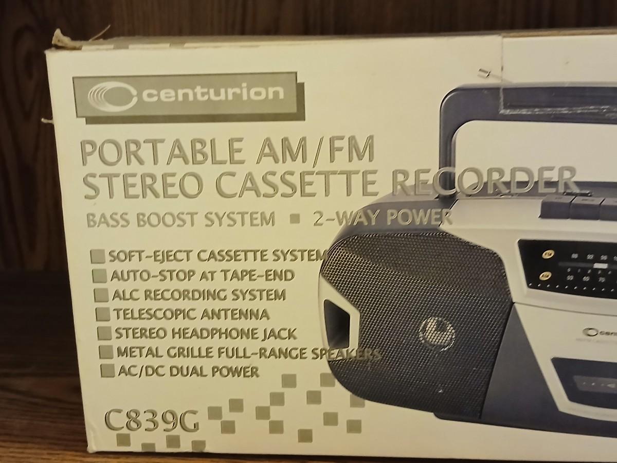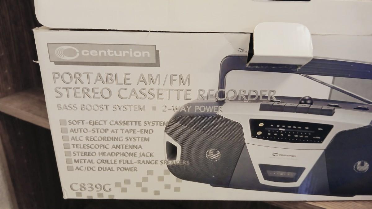 Brand new old stock Centurion portable AM/FM Stereo Cassette recorder with bass boost system C839G