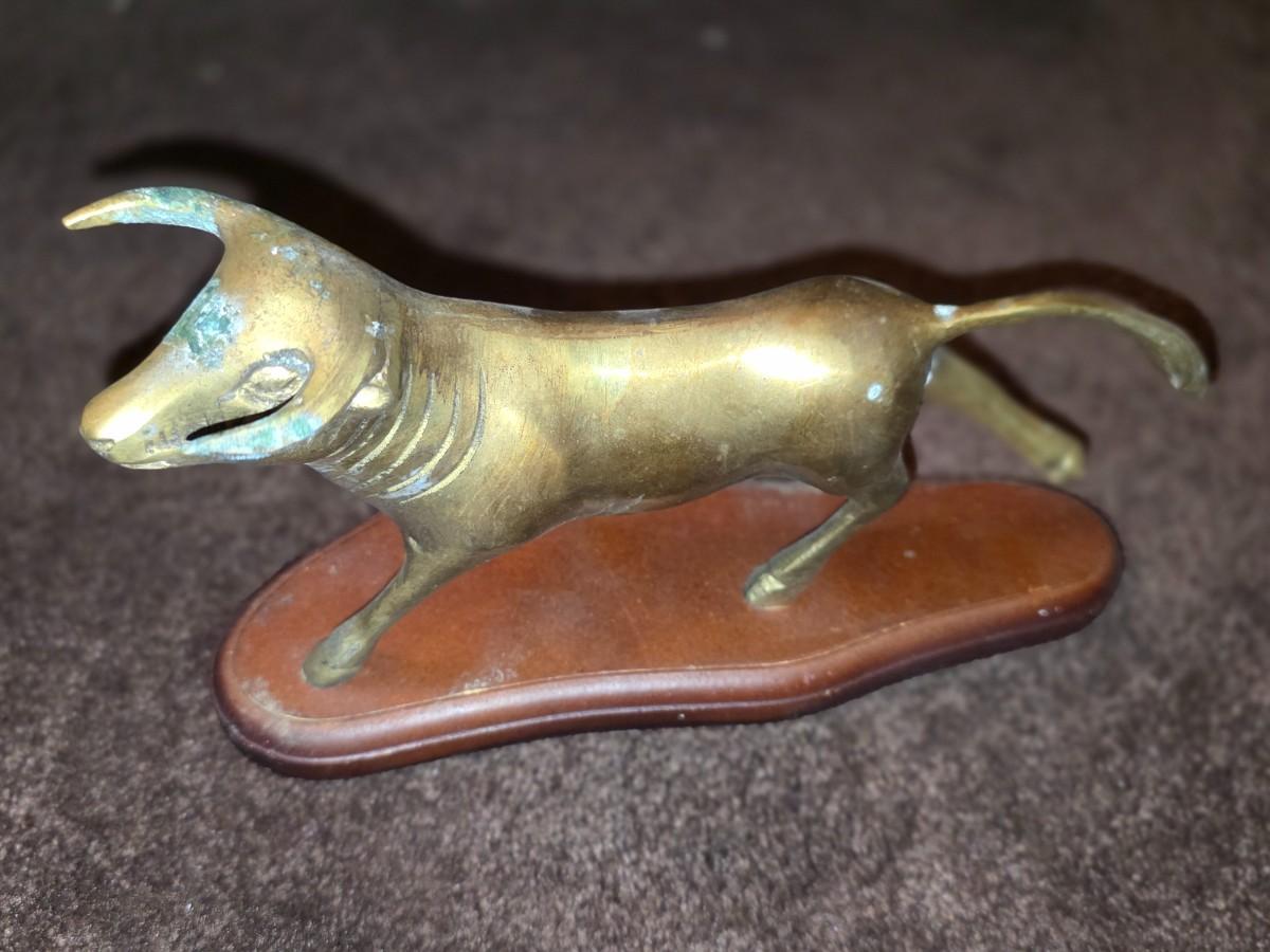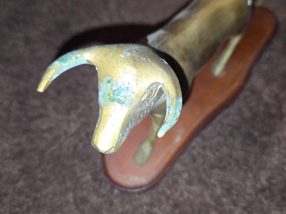 8.5 inches long. 4.5 inches tall. Some blemishes shown in pics.