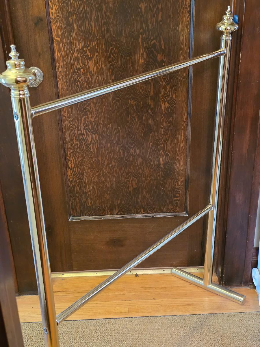 Unique brass quilt rack. Single display measures 46" x 34". Great brass knobs!