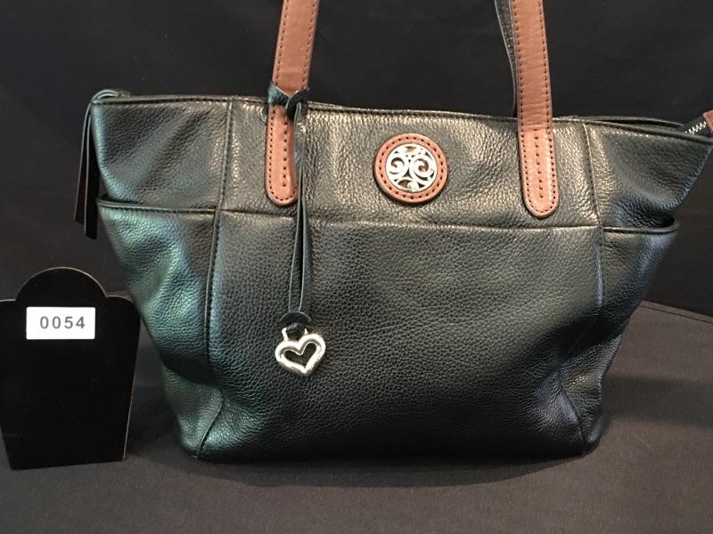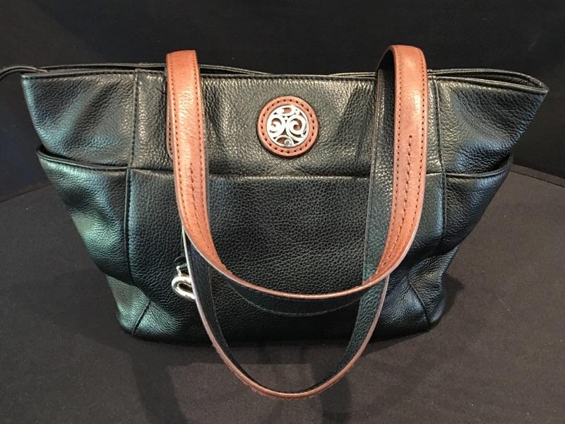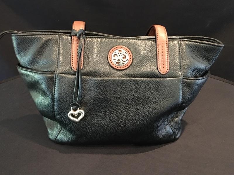 Brighton Pebble Leather Black/Brown Handbag w/ Heart Dangle Item #54