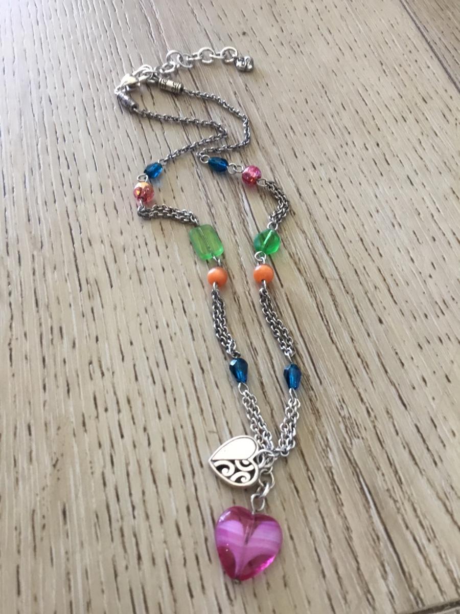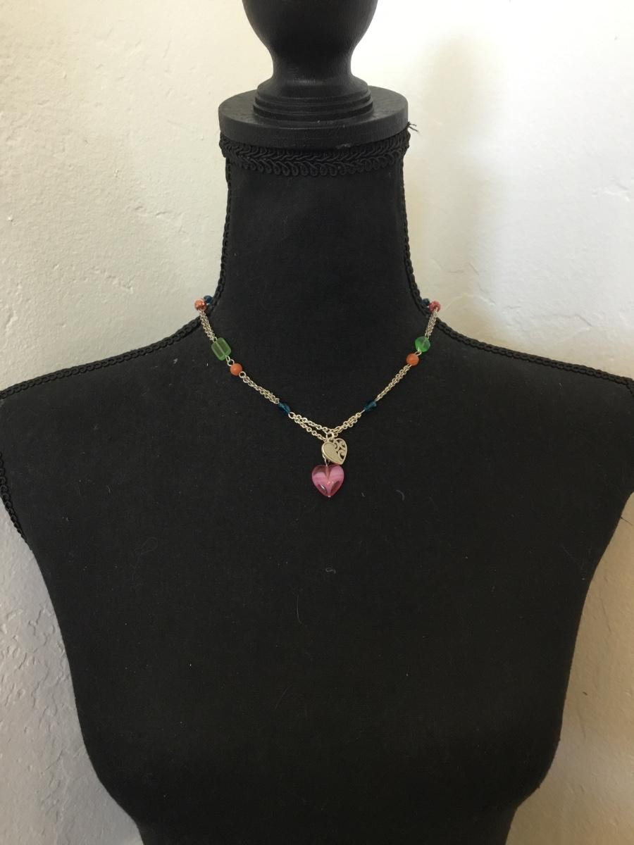 Brighton, vintage, bright, heart charm, beaded, colorful necklace