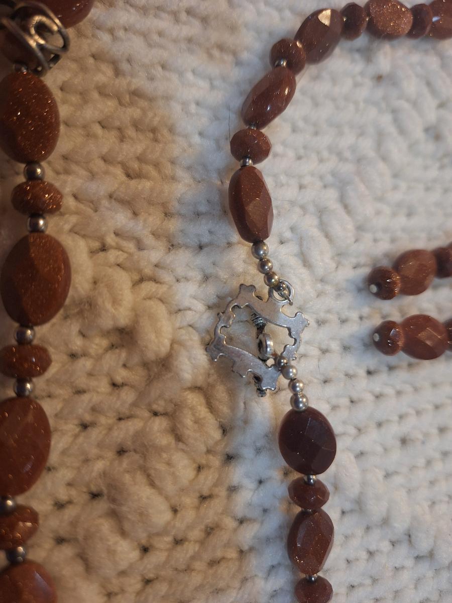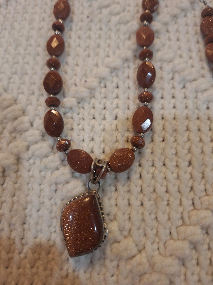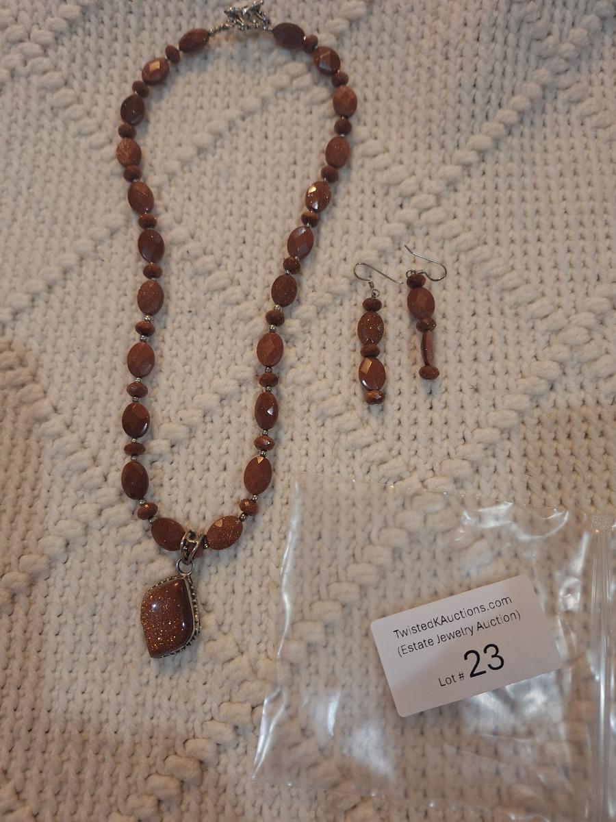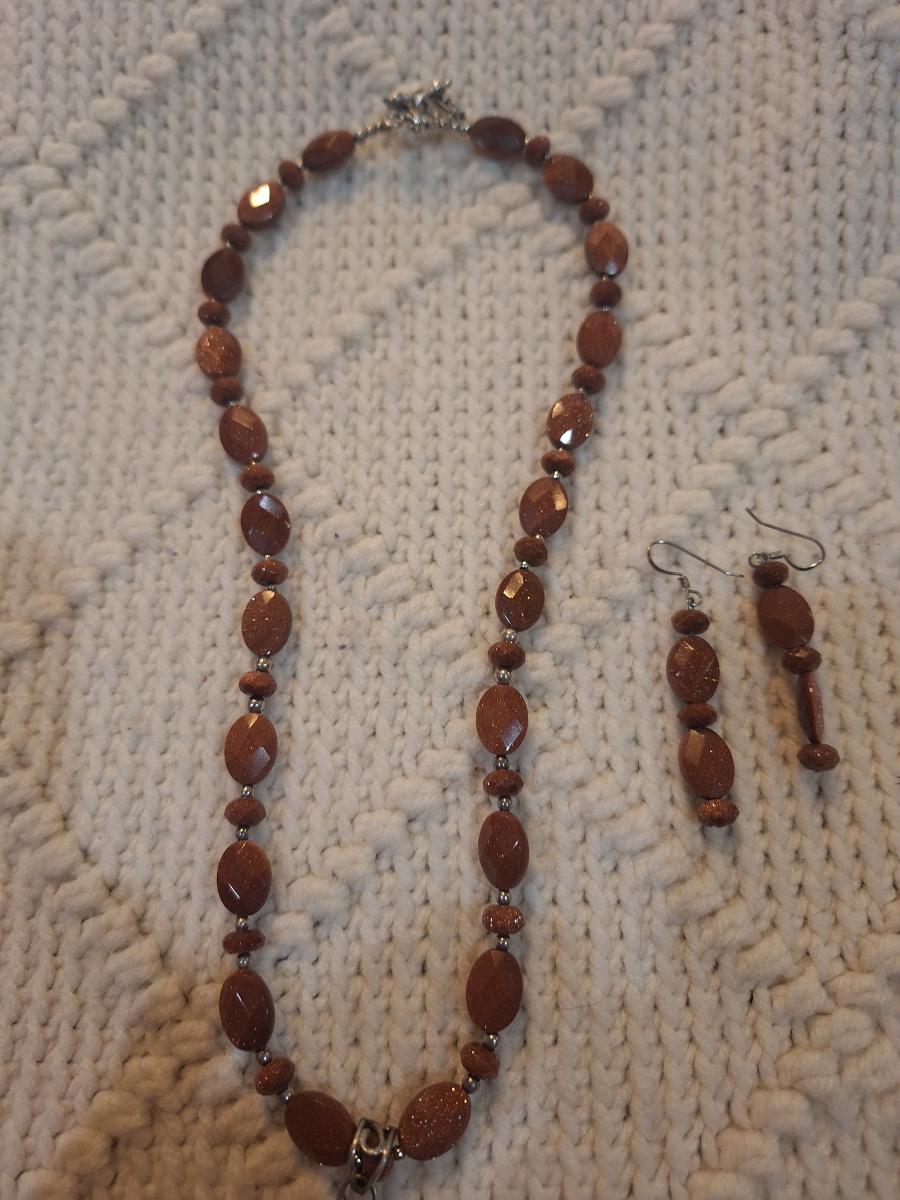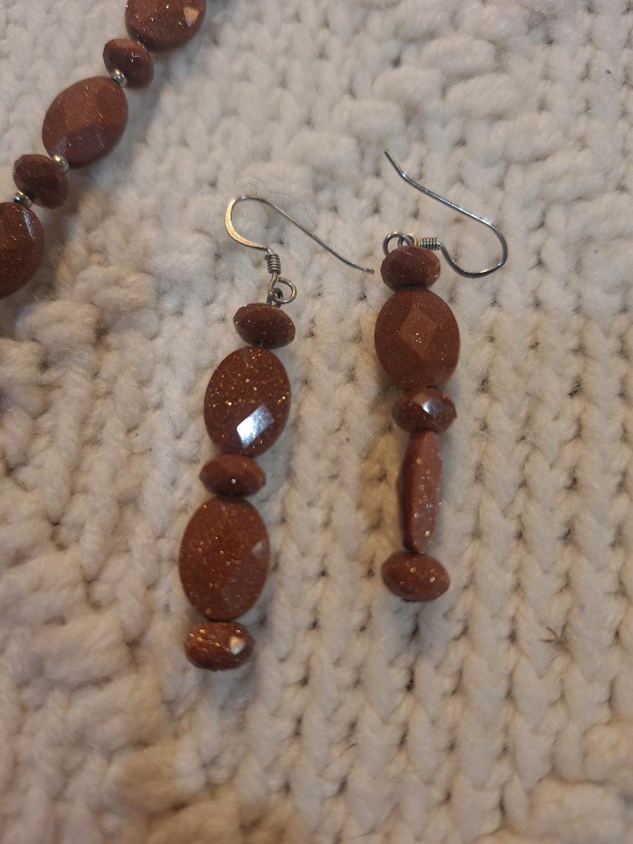 Brown beaded necklace with pendant and matching earrings