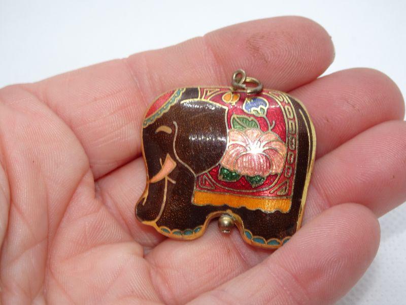 Brown Cloisonné Lucky Elephant Pendant