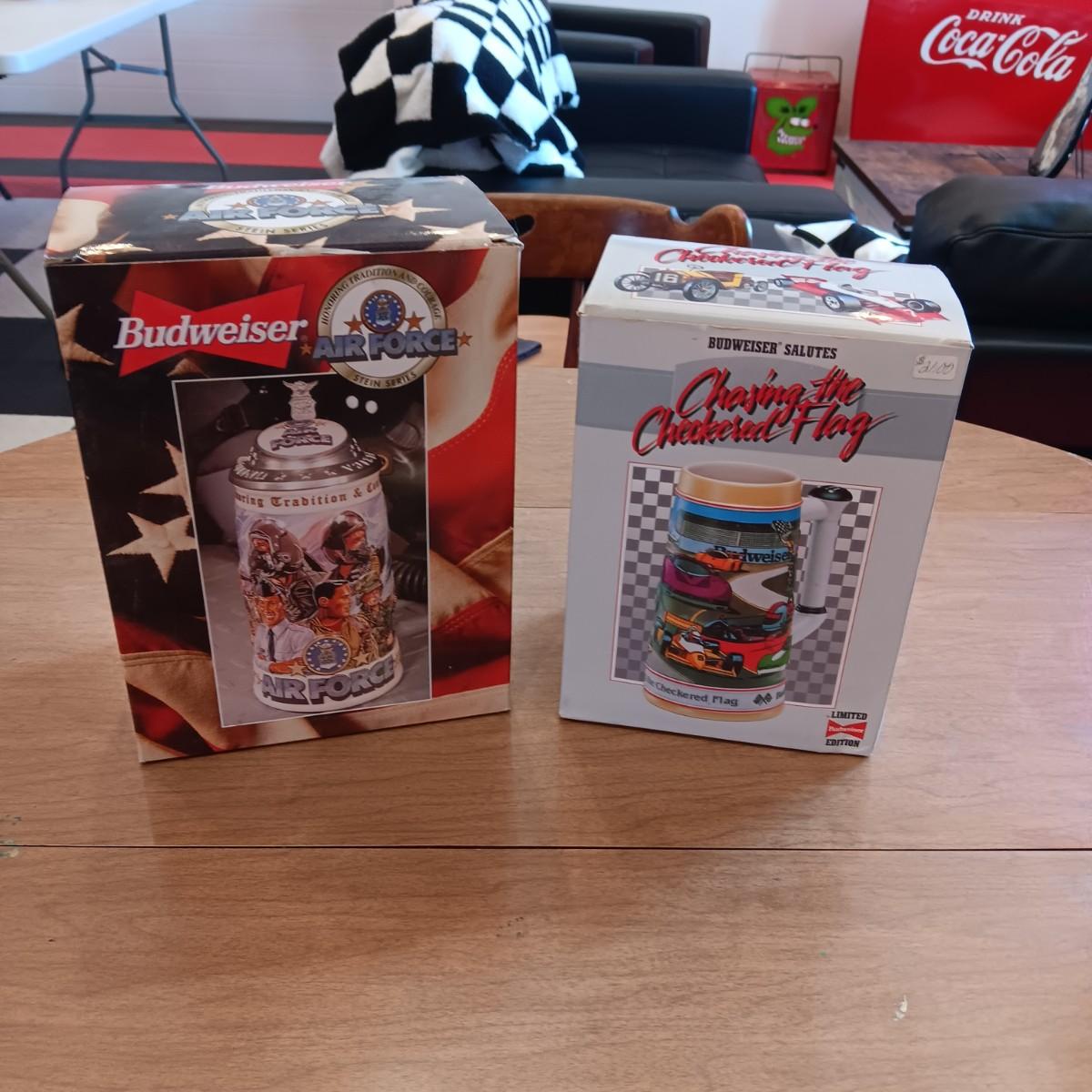 BUDWEISER AIR FORCE AND CHASING THE CHECKERED FLAG BEER STEINS