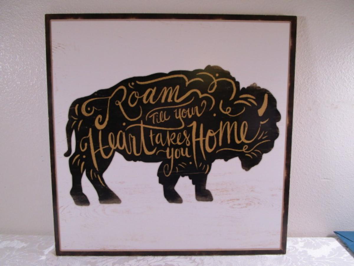 Buffalo picutre says "Roam till Your Heart Takes You Home" 18-1/4" x 18-1/4"