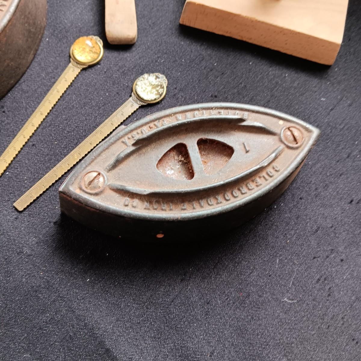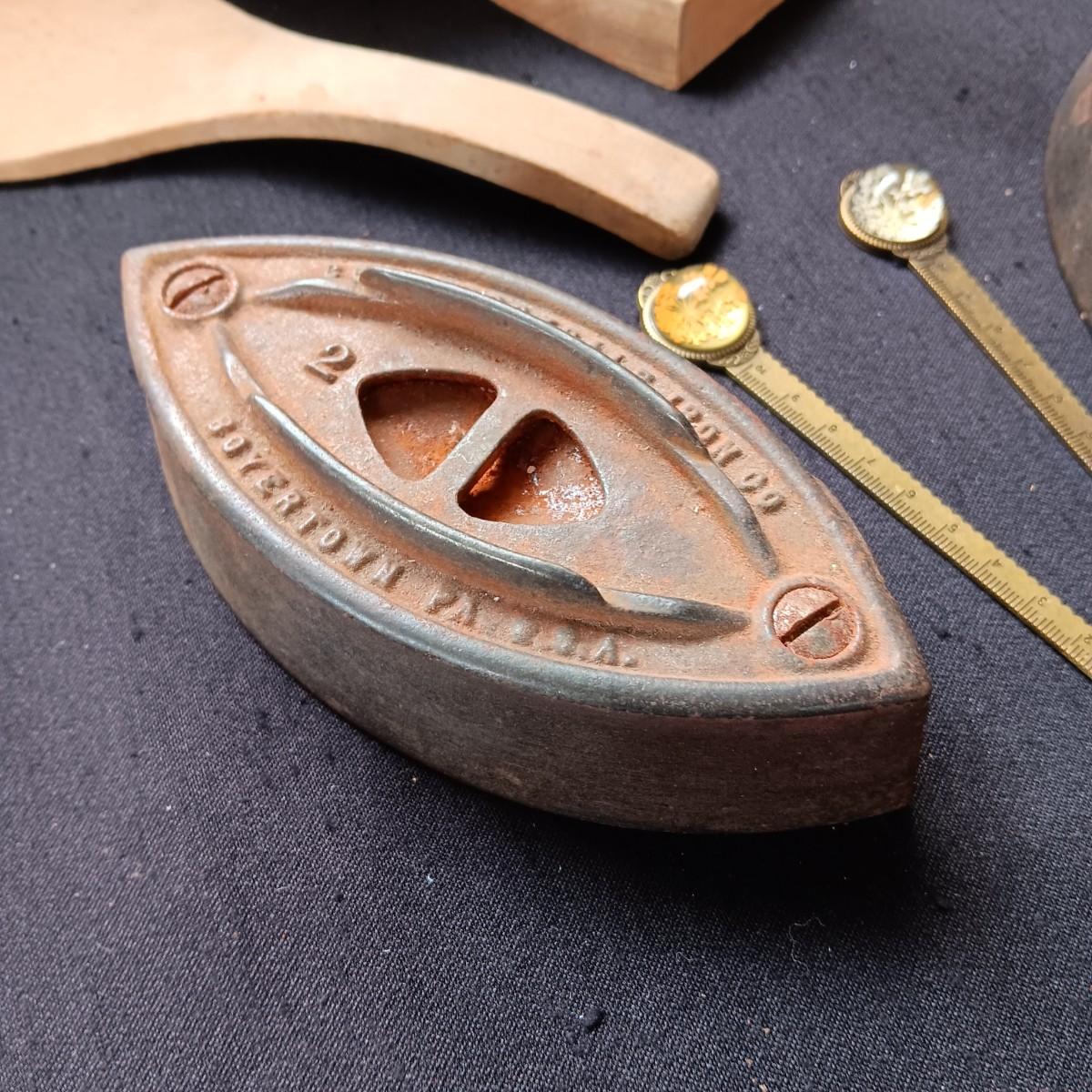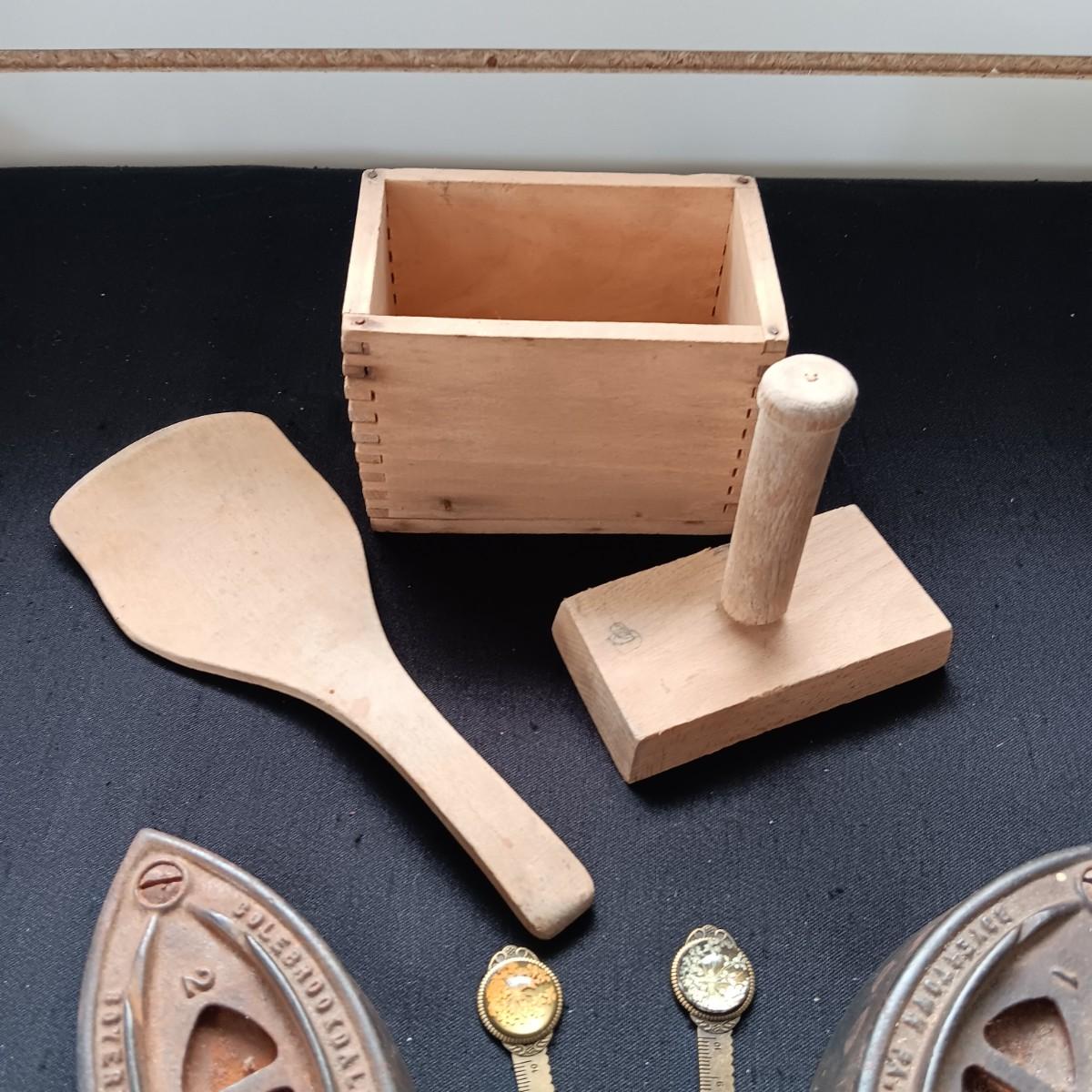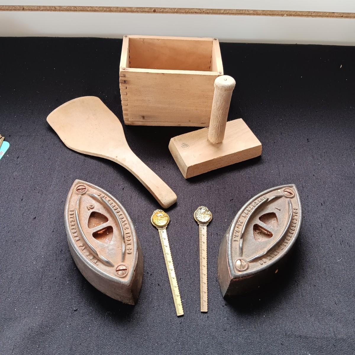 BUTTER MOLD, CAST CLOTHES IRONS AND 2 LETTER OPENERS