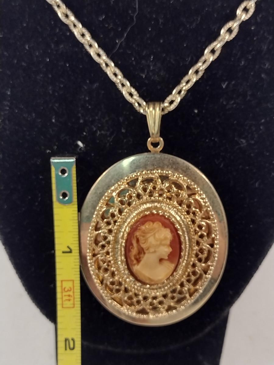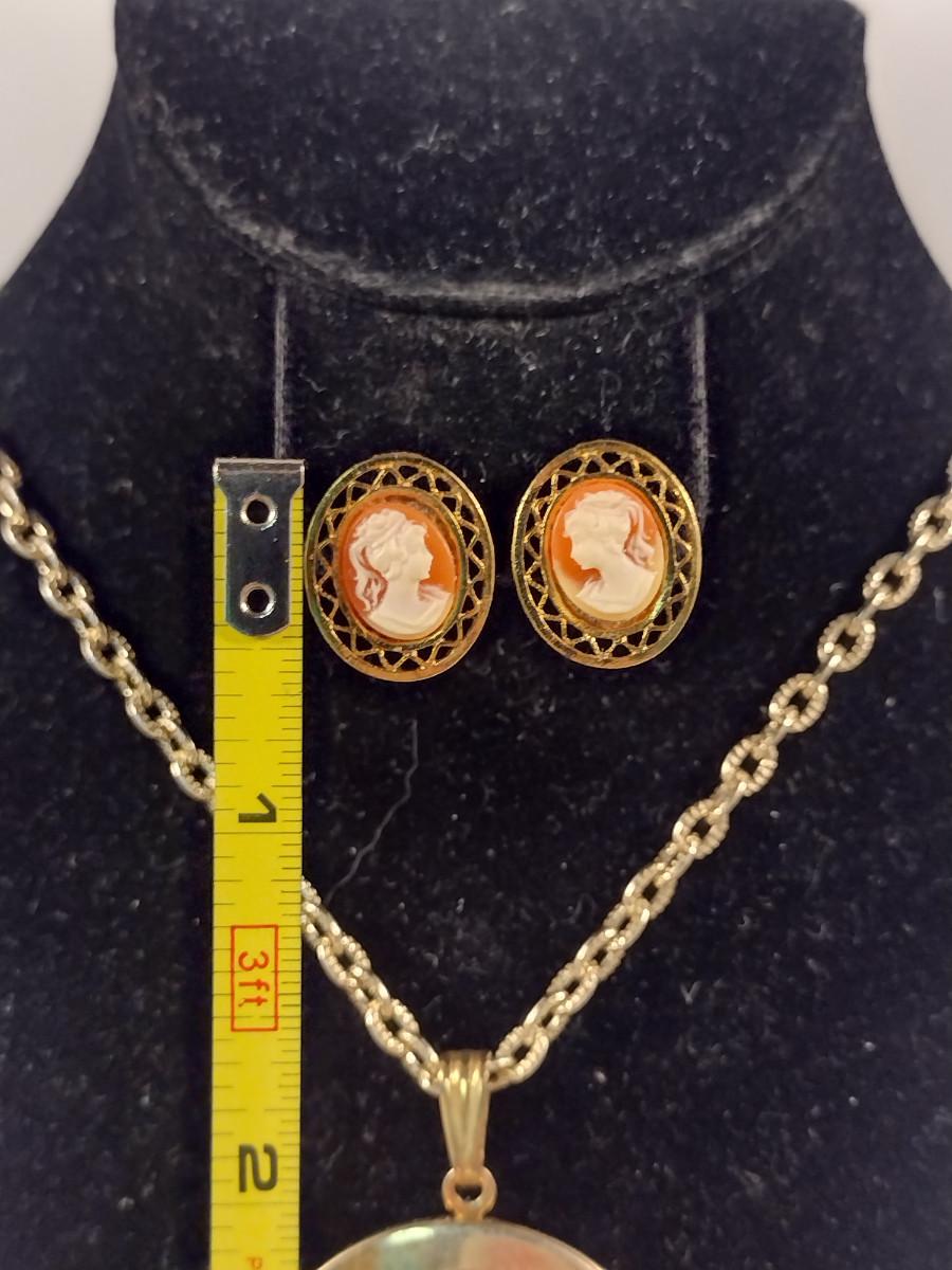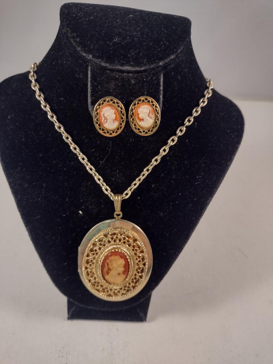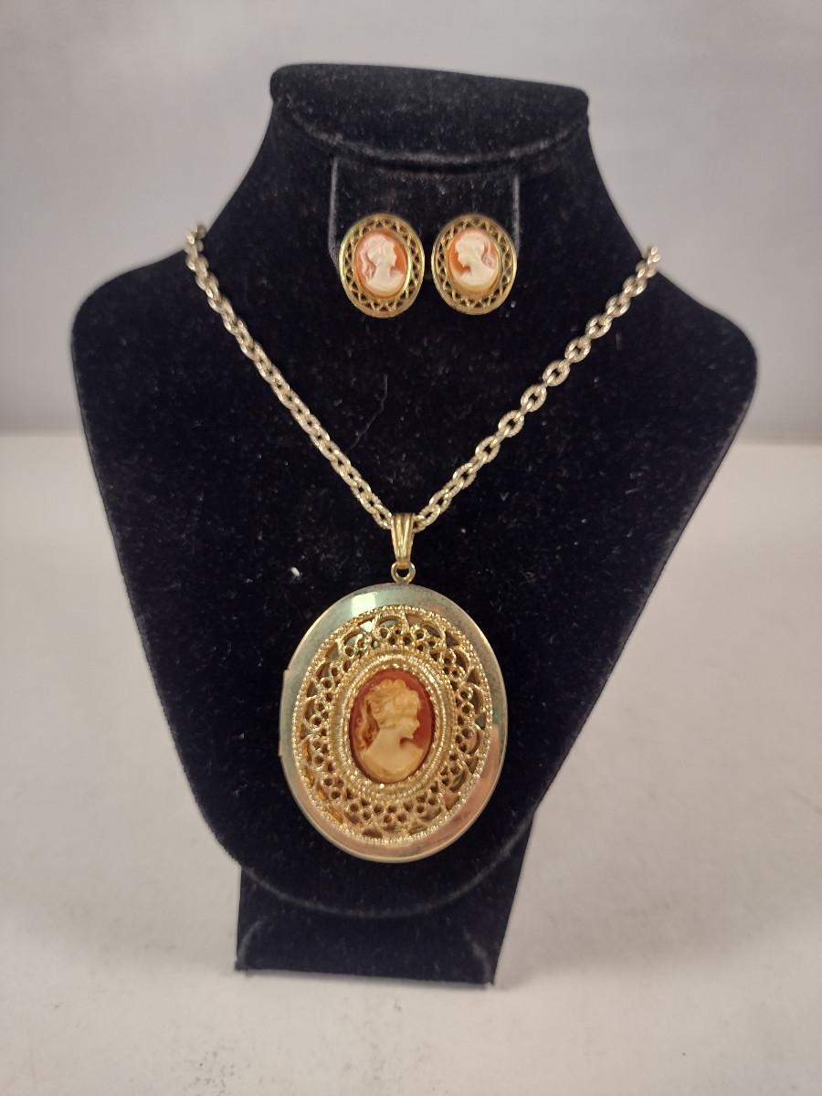 Cameo Locket Necklace and Earring Set (#11). Earrings are for pierced ears.