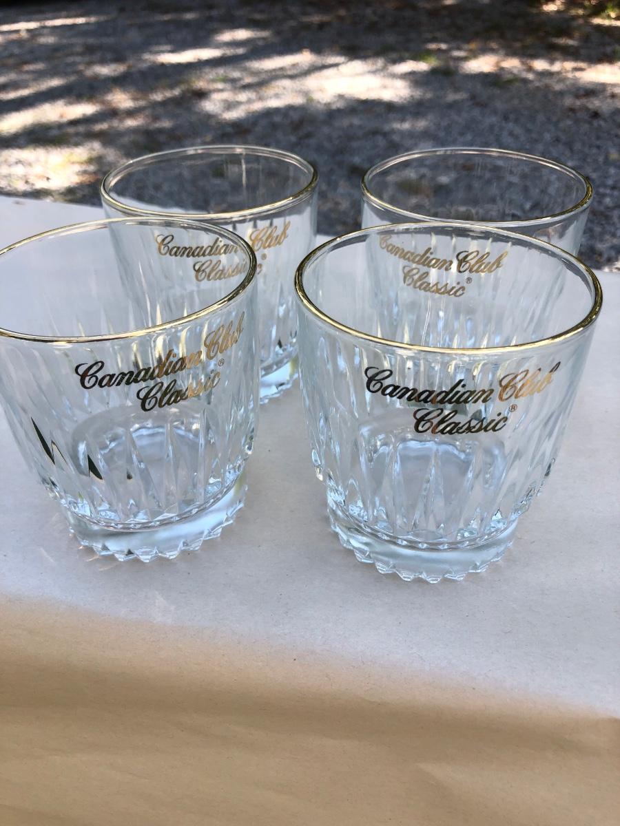 Canadian club classic gold rimmed glasses, Stella wine glasses