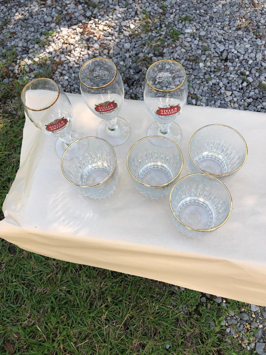 Canadian club whiskey low ball glasses x4, Stella wine glassesx3. Excellent condition.
