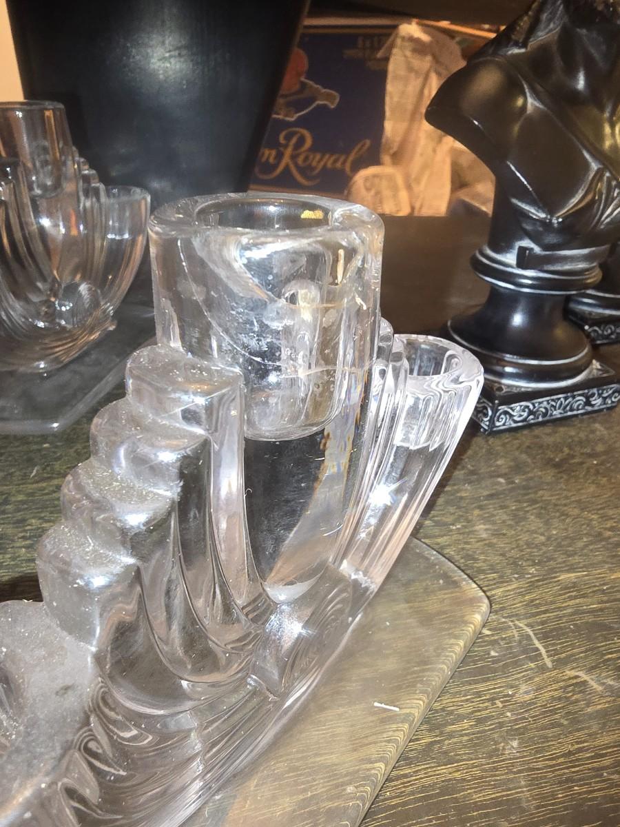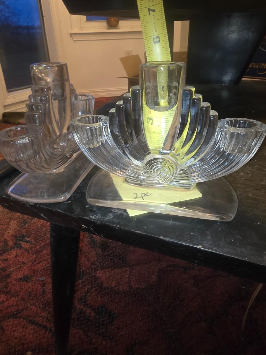 Glass candle holders 5" tall. Small crack on one