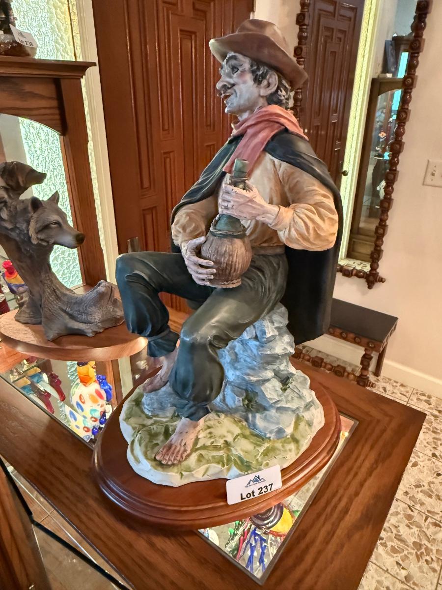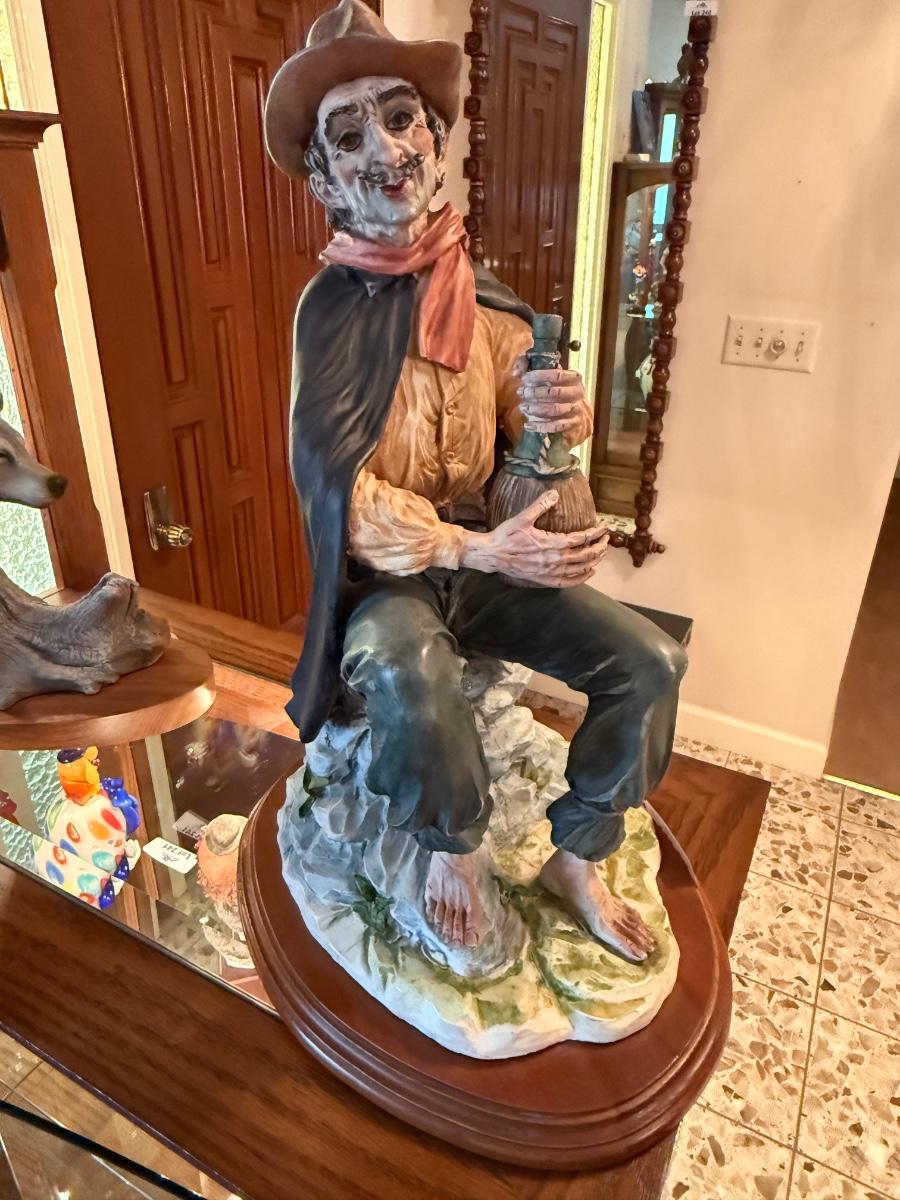Capodimonte italian statue by DEAR - man sitting with chianti bottle