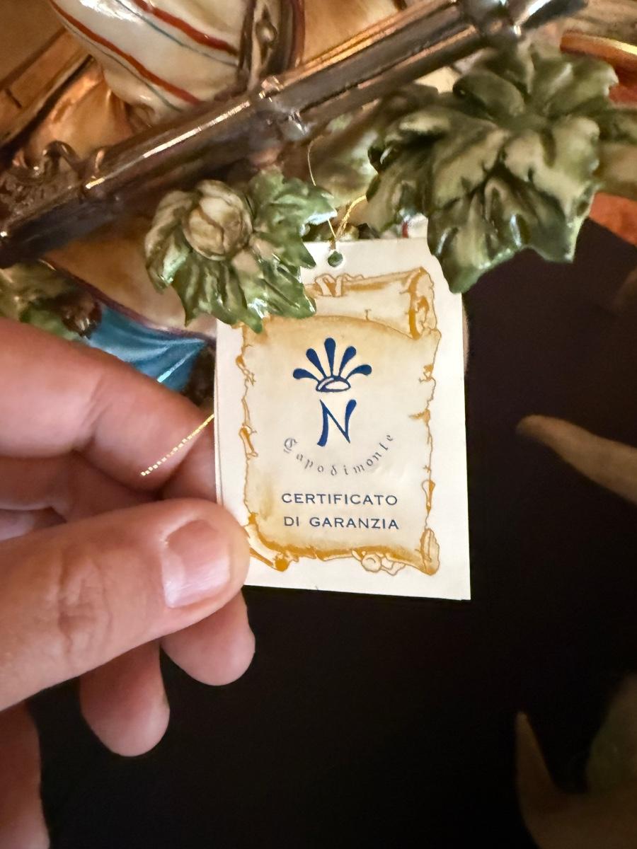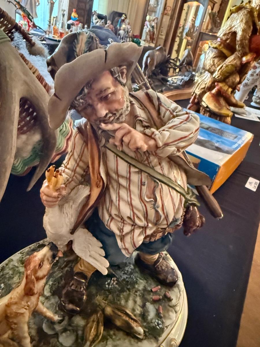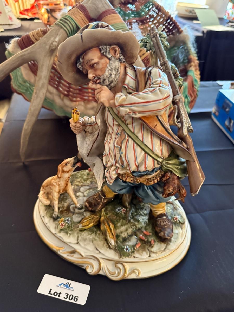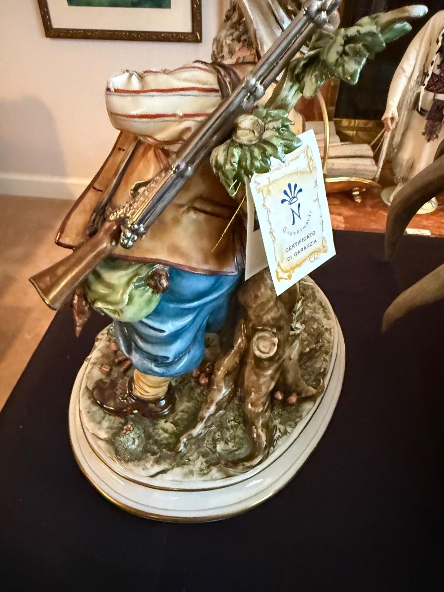 Capodimonte stamped porcelain hunter w/dog & rifle 12”t