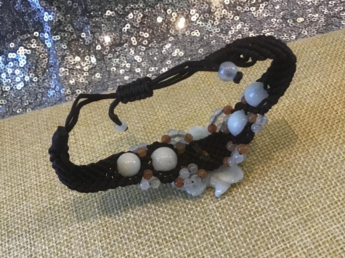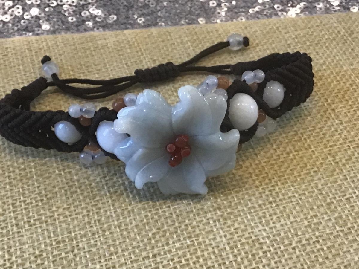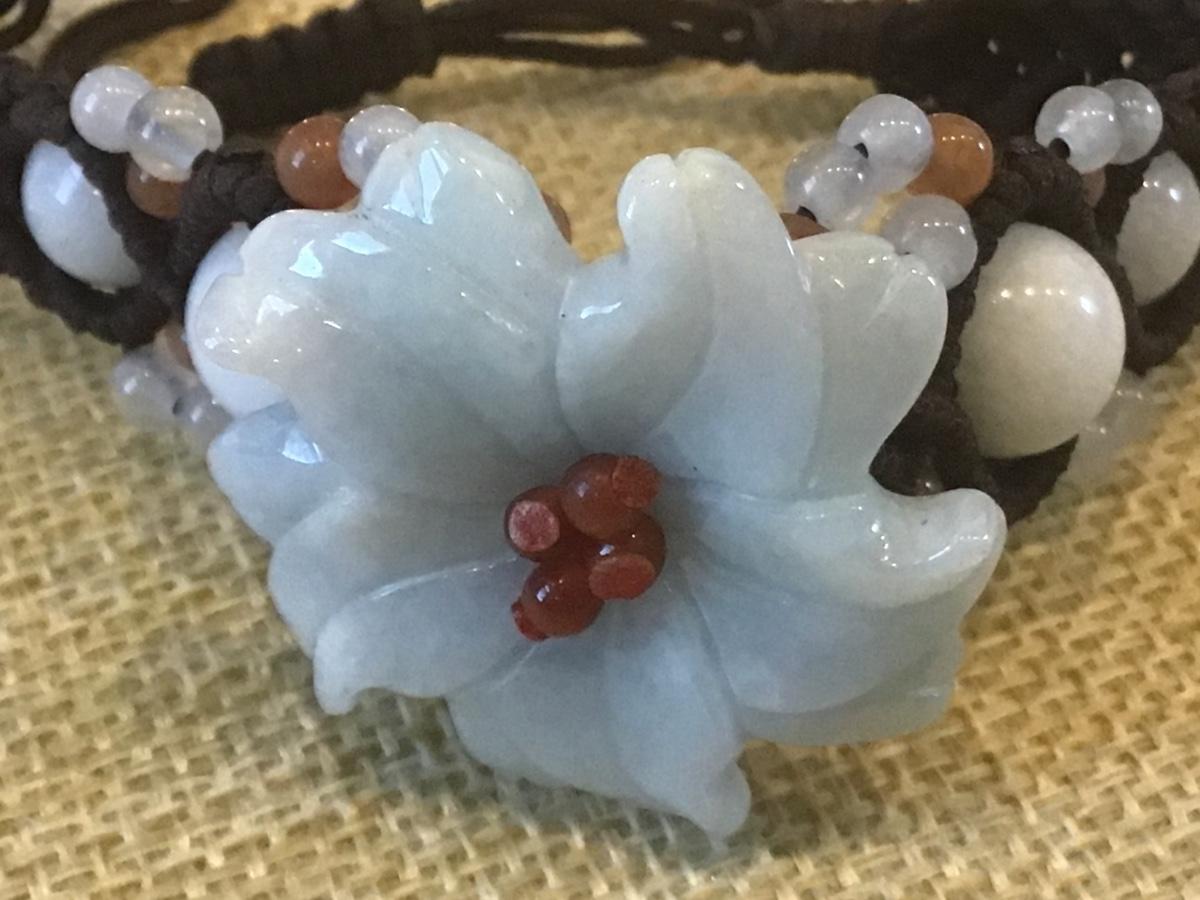 Carved Celadon Green Jade Stone Knotted Cord Wide Adjustable Bracelet