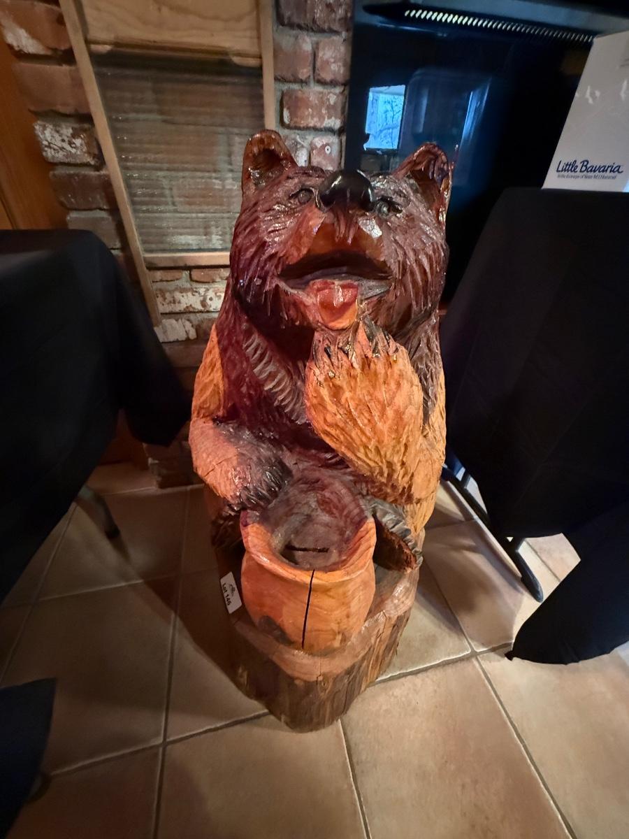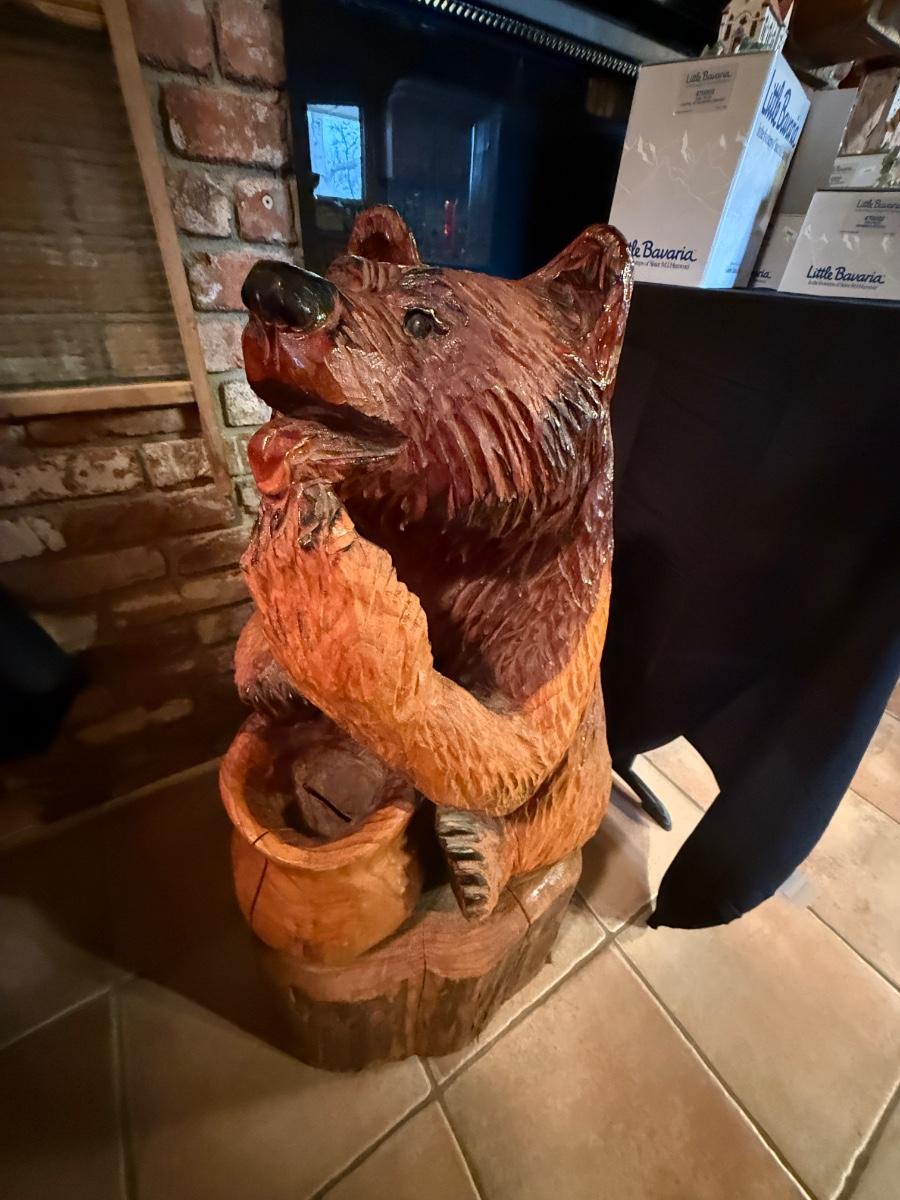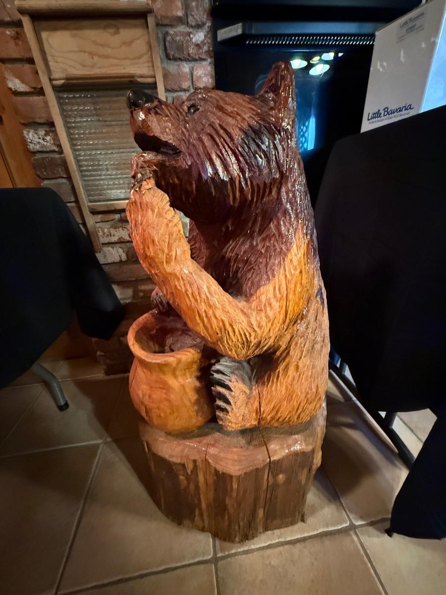 Carved Wooden Log Bear & Honeypot - 35”t approx.