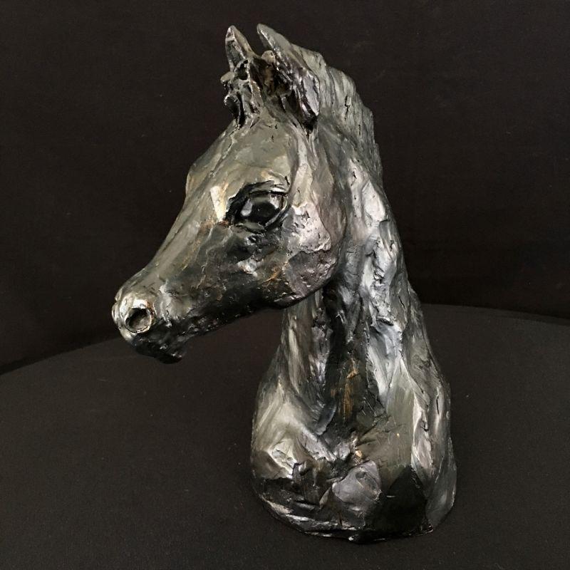 Bronze sculpture of horse colt bust by Santa Fe artist Pearson signed. Heavy. 12.5" h. - lots of personality.