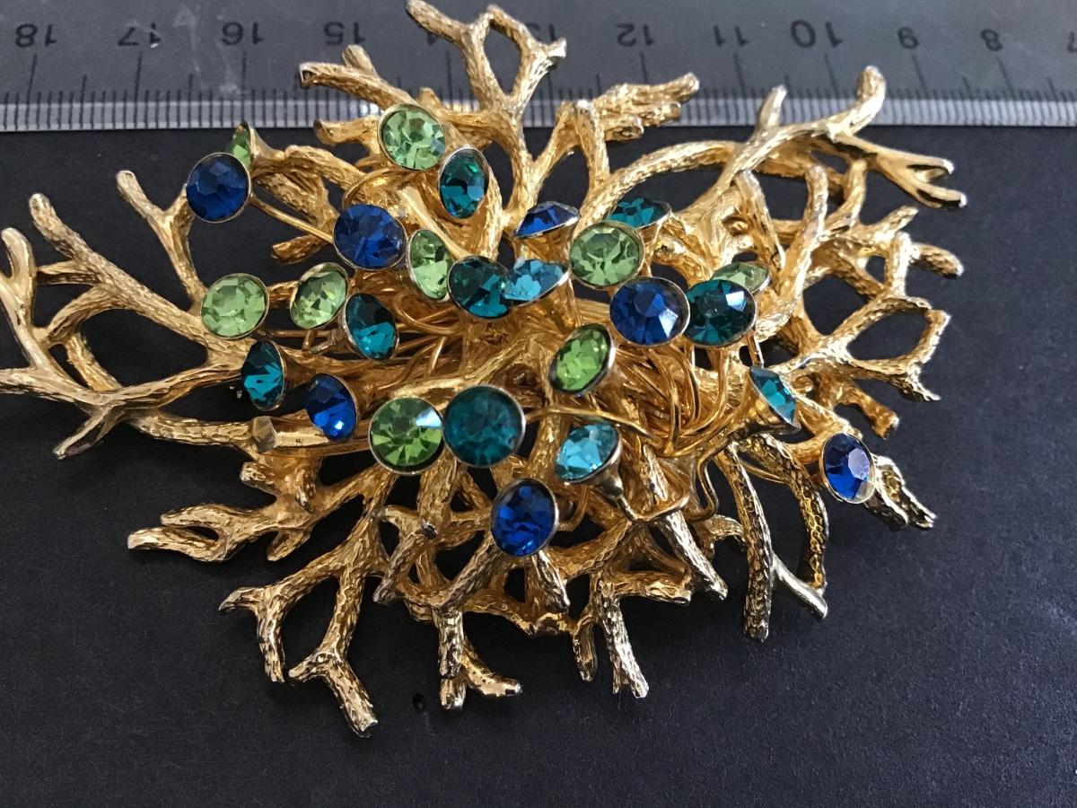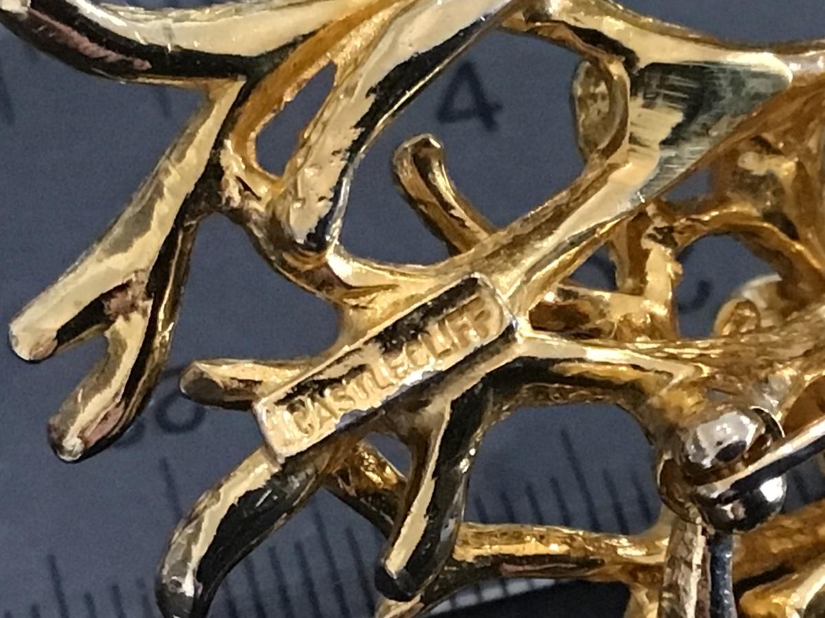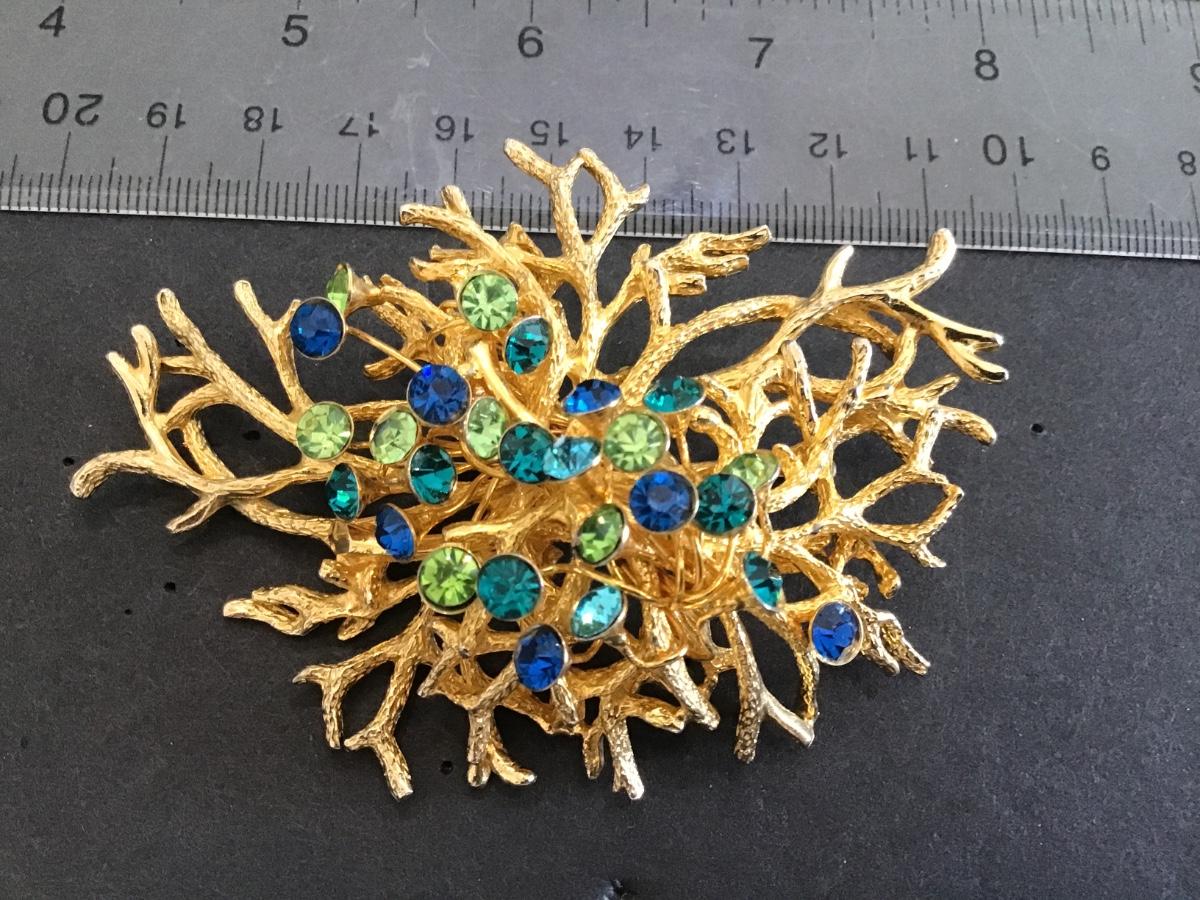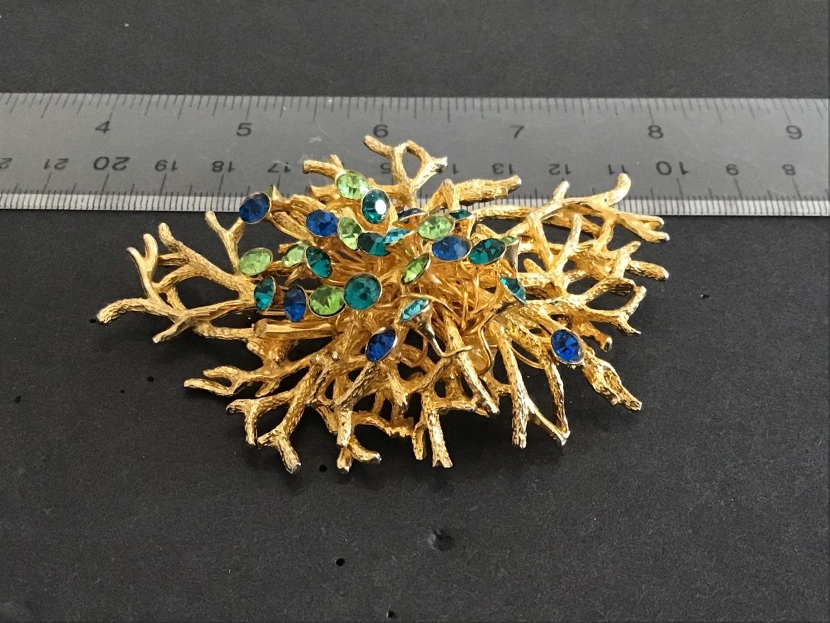 Castle cliff Signed Trembler Coral Gold Plated Rhinestone XLarge Signed Vintage