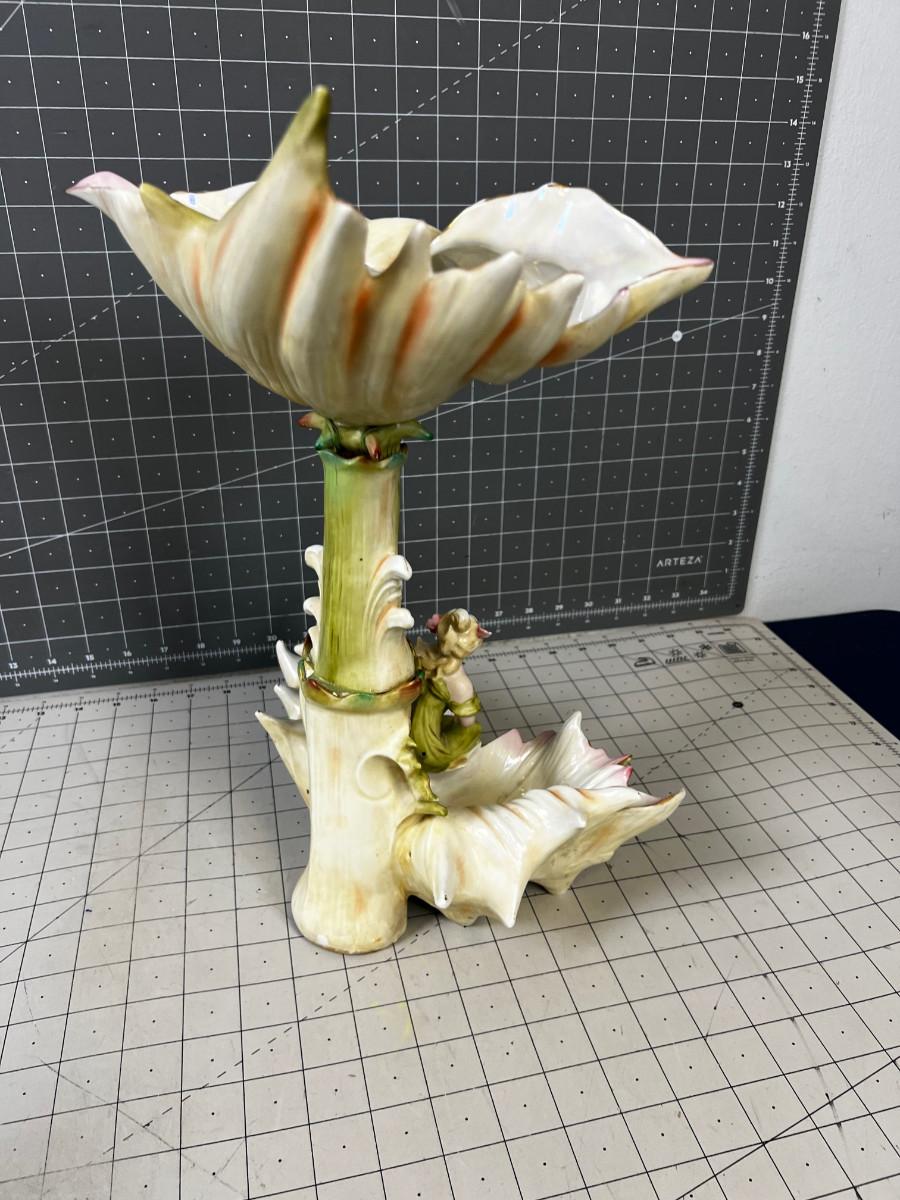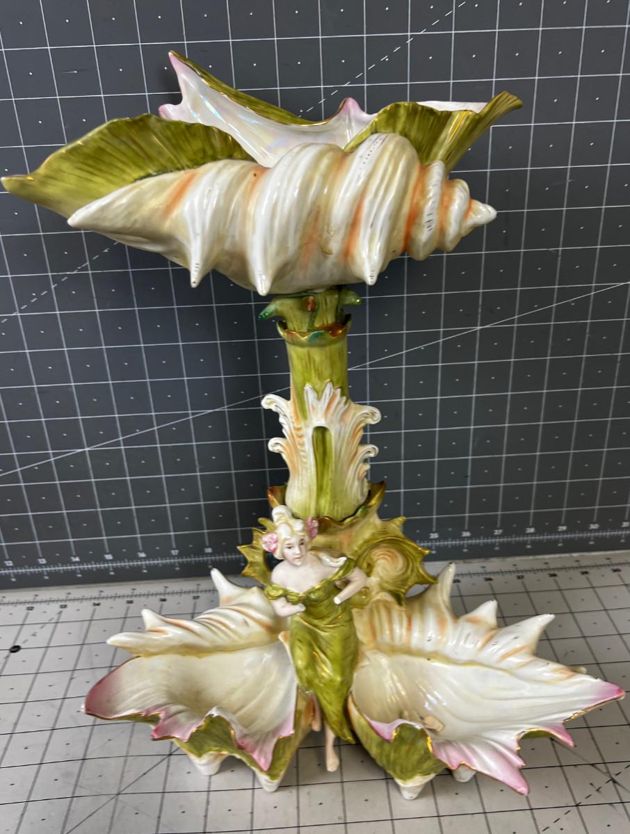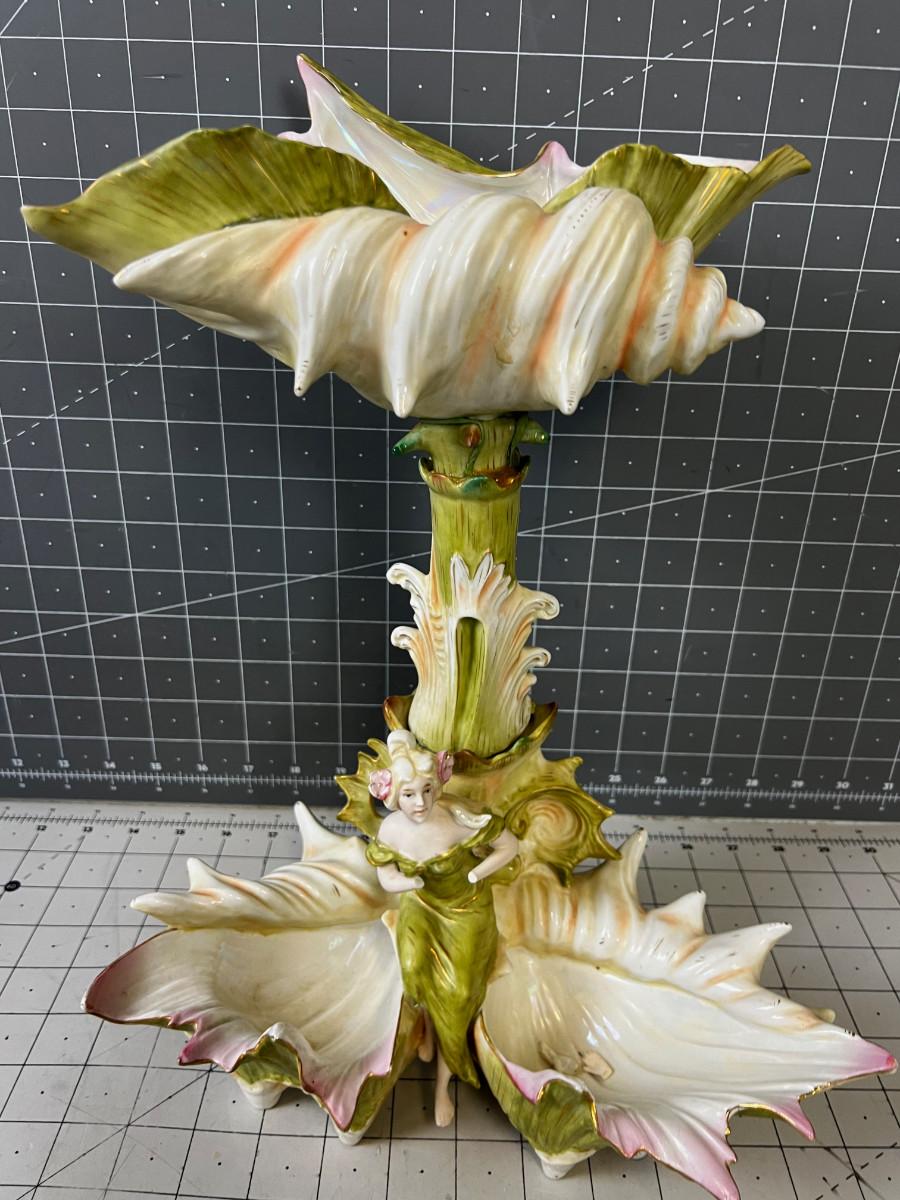 Centerpiece Planter Green Art Nouveau Shell Vase.