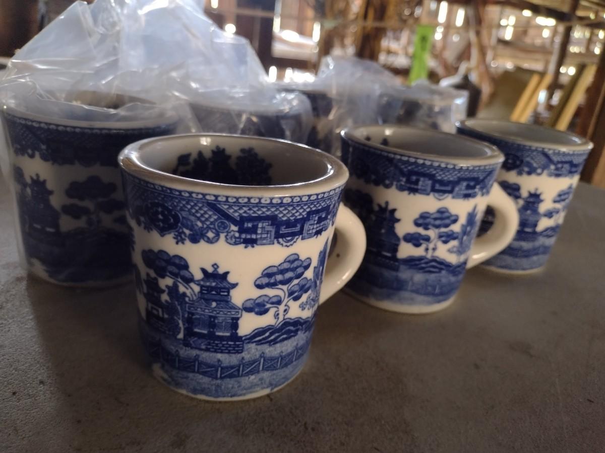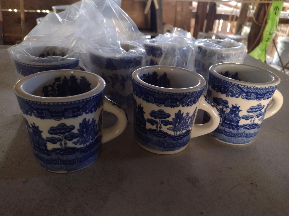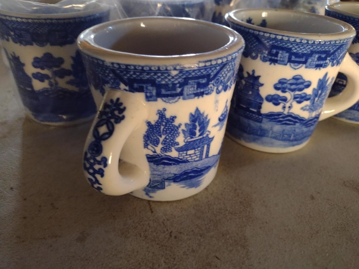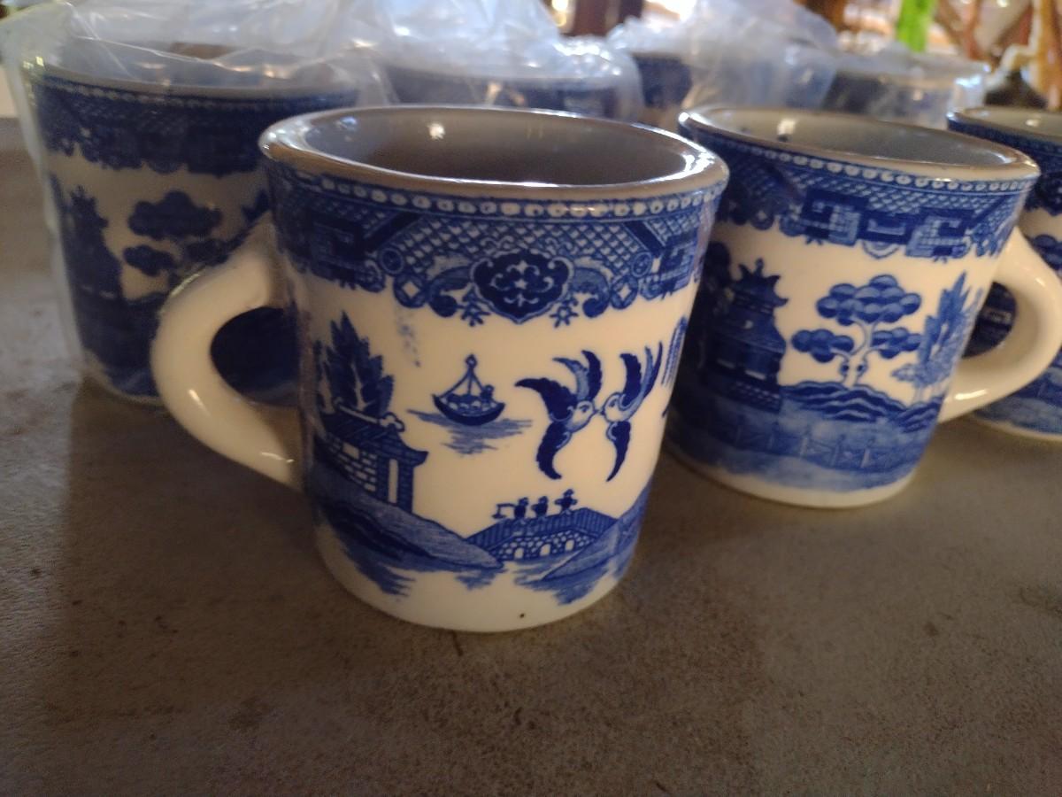 Set of Six Blue Willow Design Ceramic Coffee Mugs