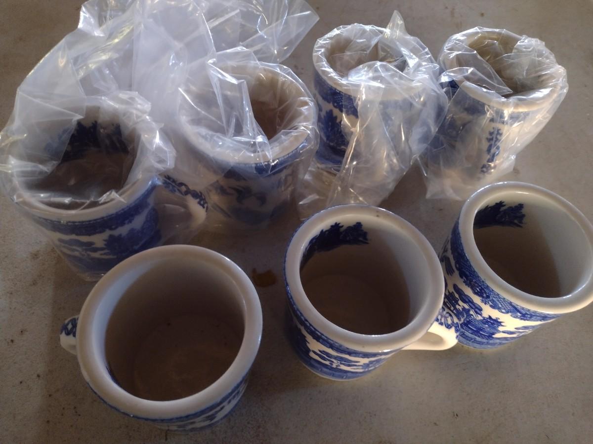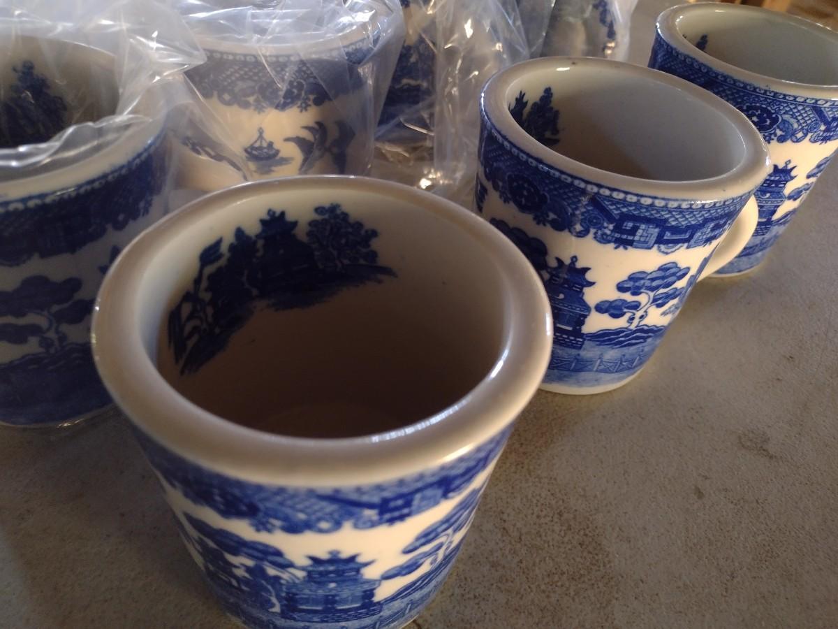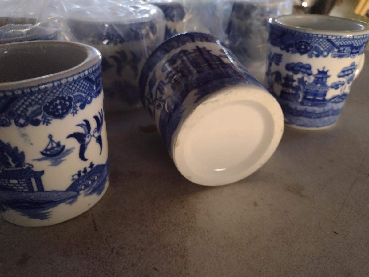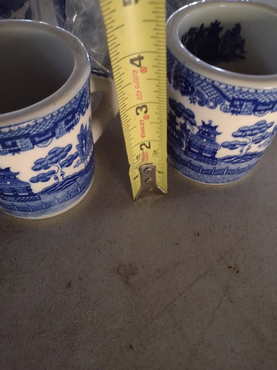 Set of Six Blue Willow Design Ceramic Coffee Mugs