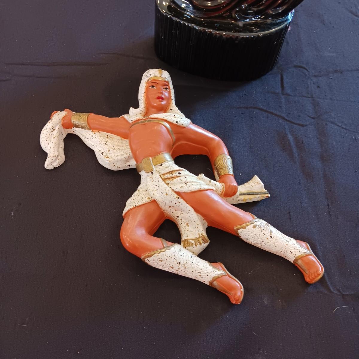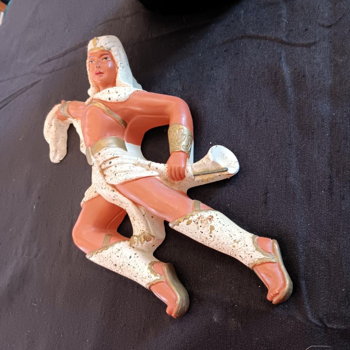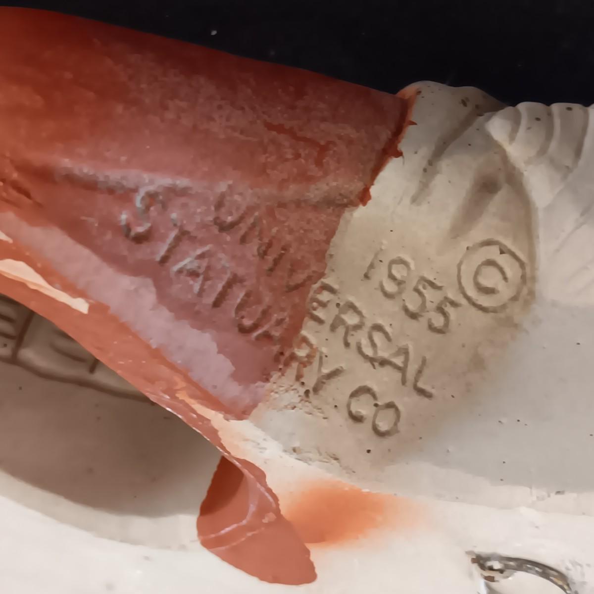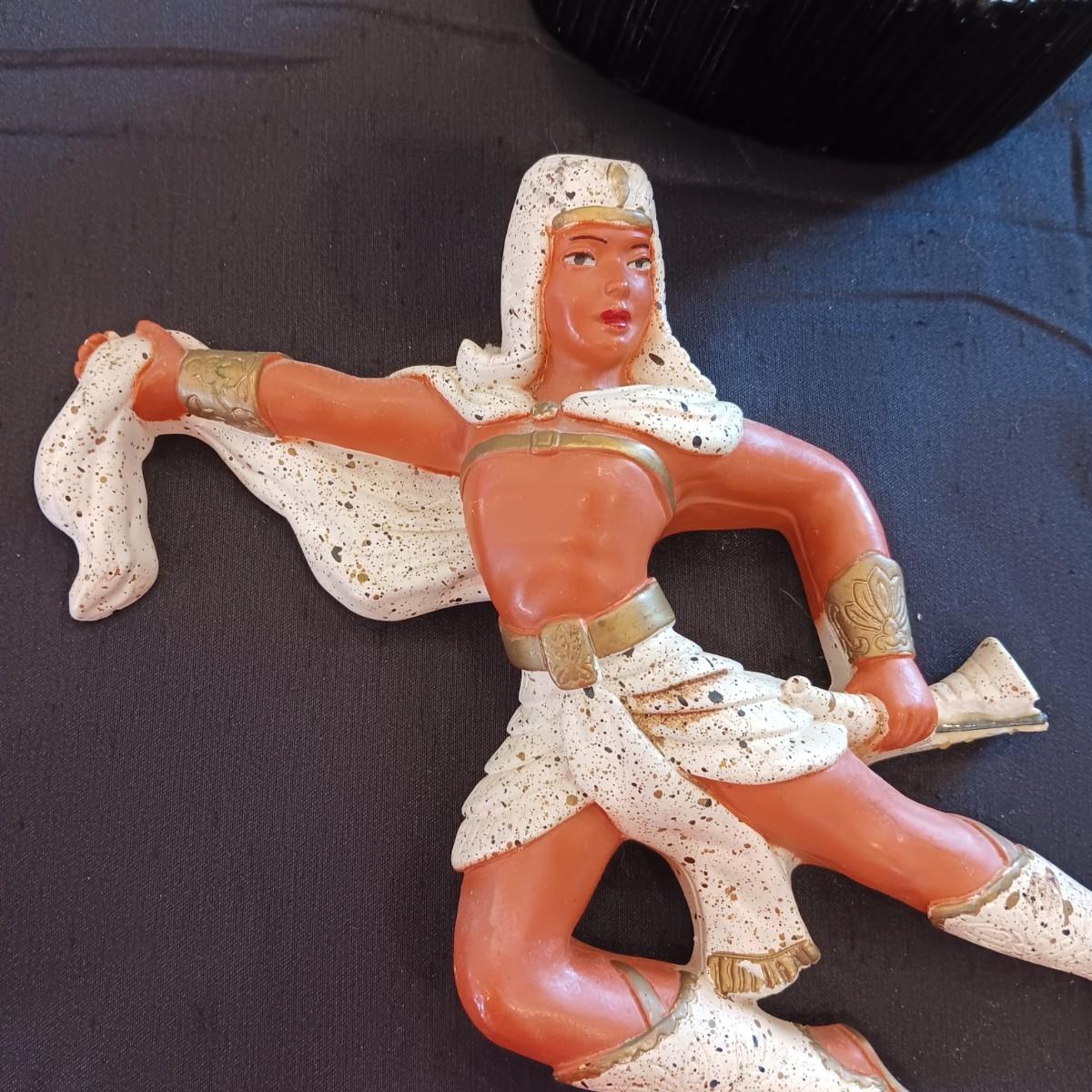 CERAMIC HORSE HEAD LAMP AND A CHALKWARE UNIVERSAL STATUARY WALL HANGING