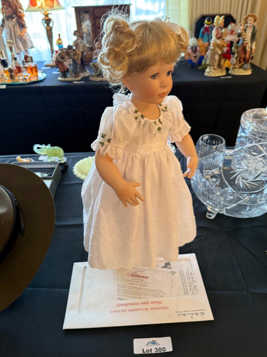 Doll with box and paperwork 1 of 4 in auction w/stand too