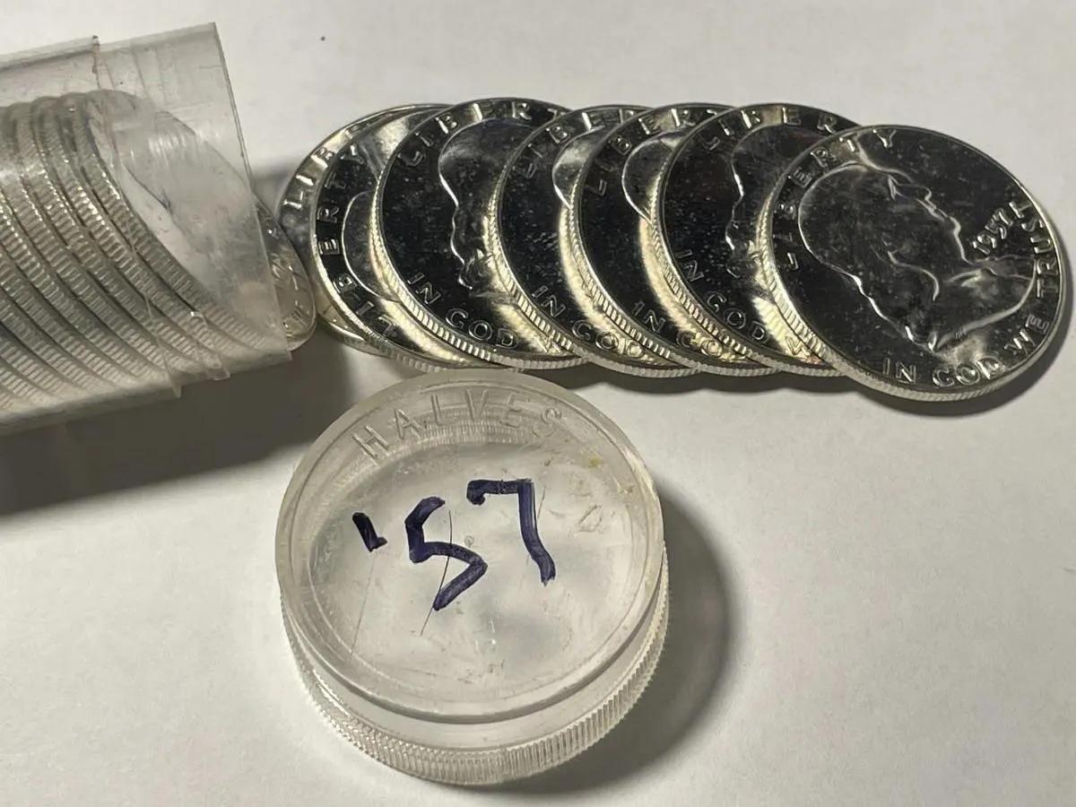 Choice BU Roll of (20) 1957 Brilliant UNCIRCULATED FRANKLIN 90% Silver Half Dollars Original!