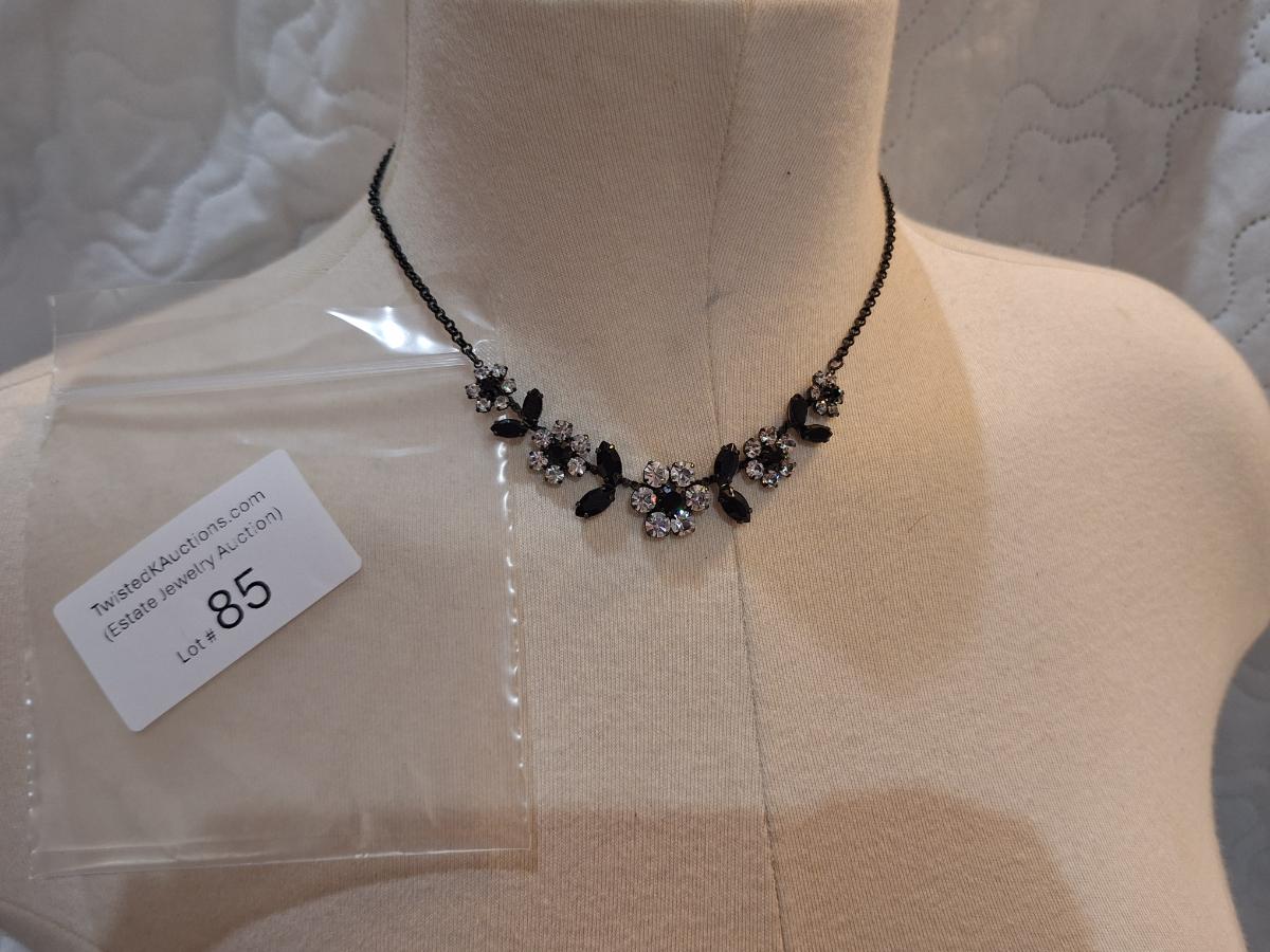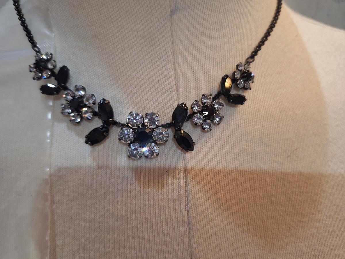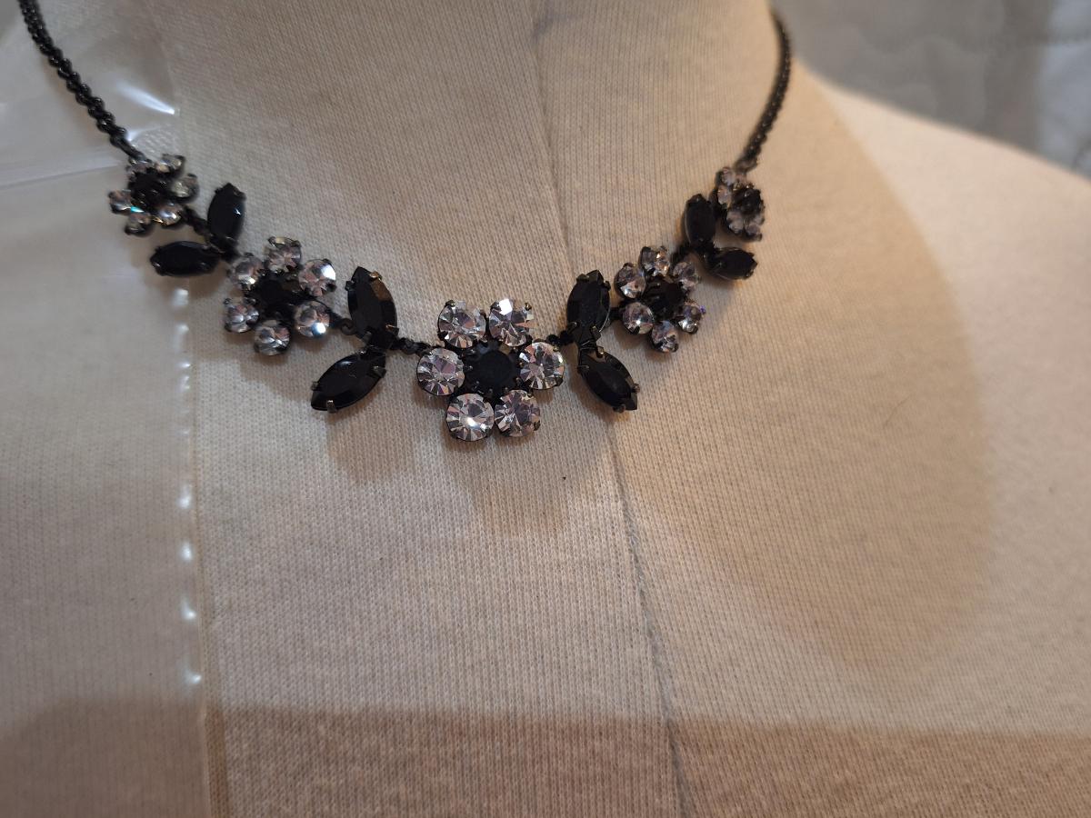 choker necklace with black and clear floral shape stones
