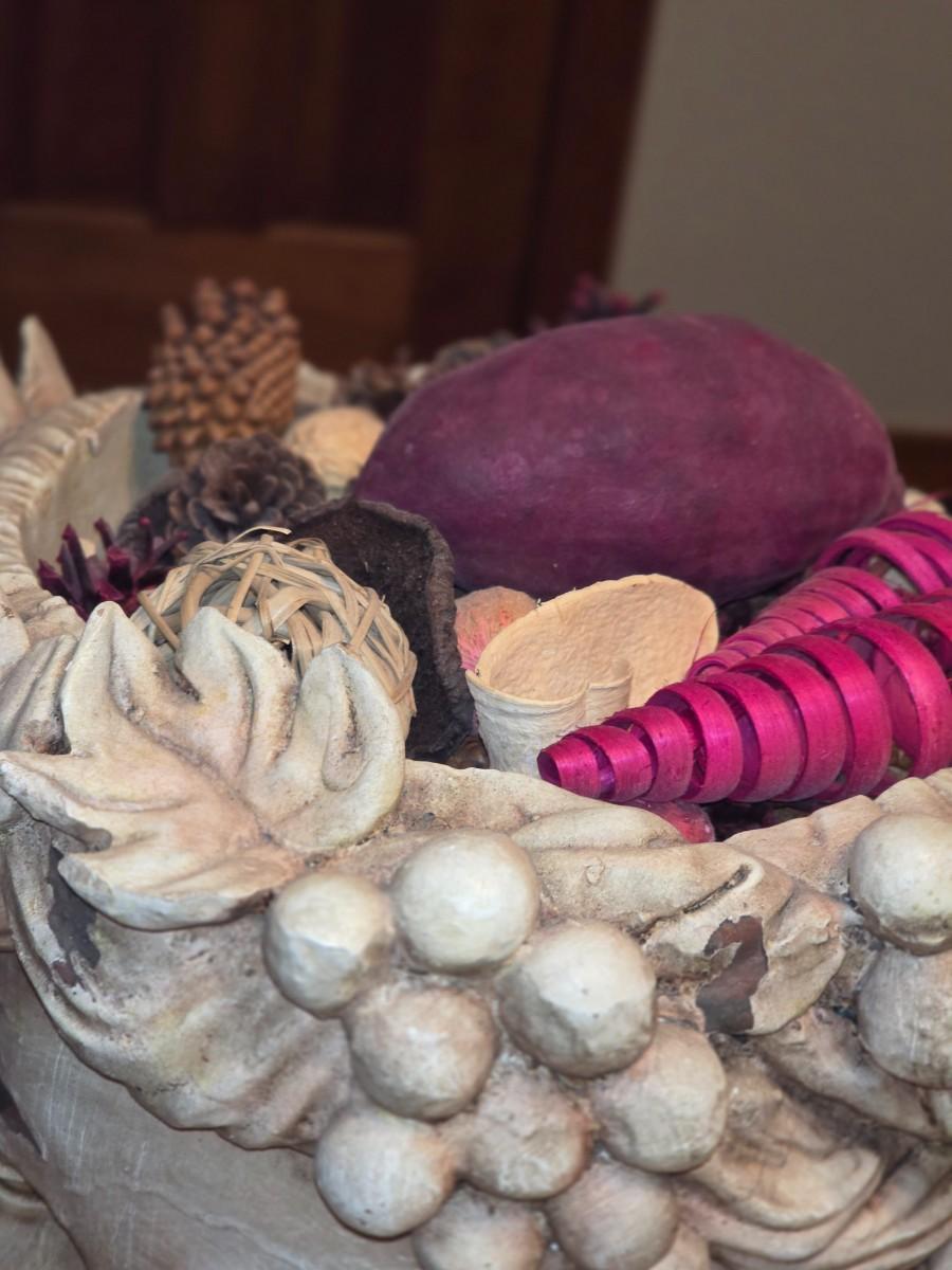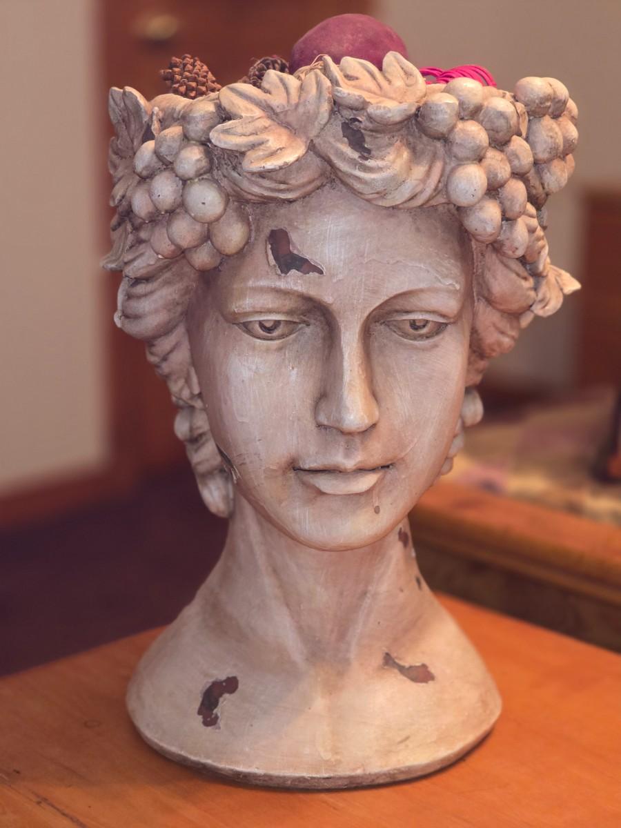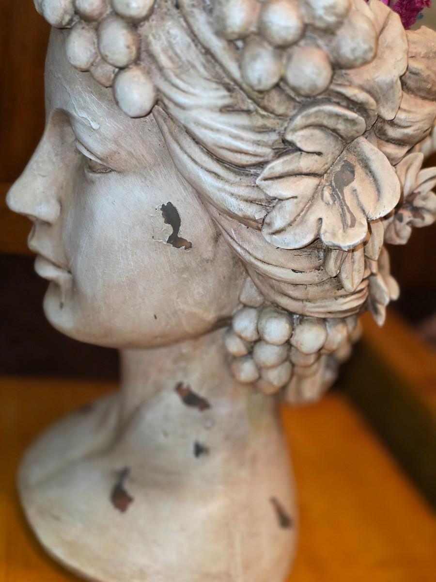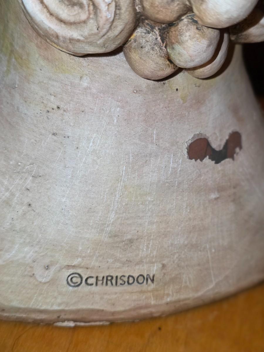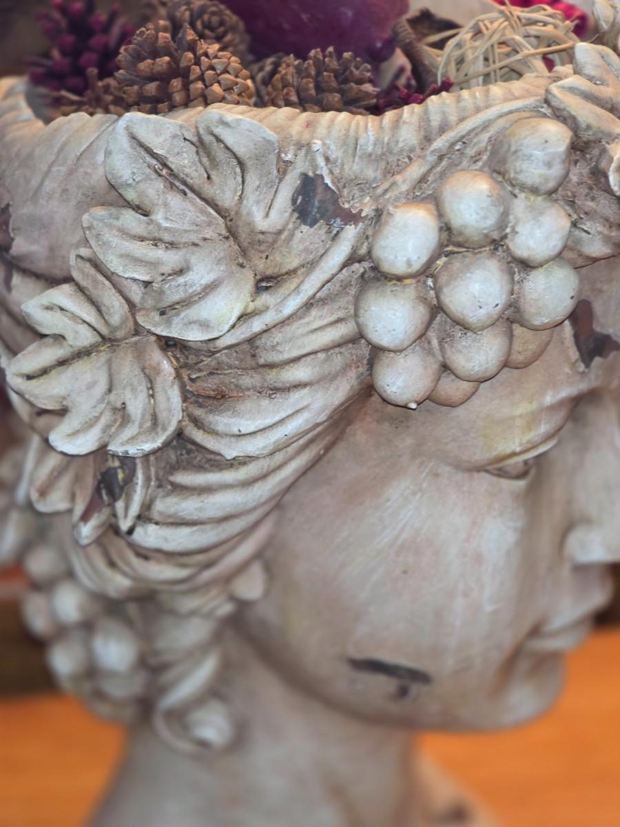 It is a heavy plastic or resin mild. Has potpourri in it at this time. Nice planter. Unique style. 16 inches tall. Base is 9 by 9 inches. @chrisdon