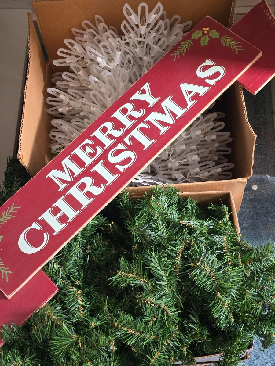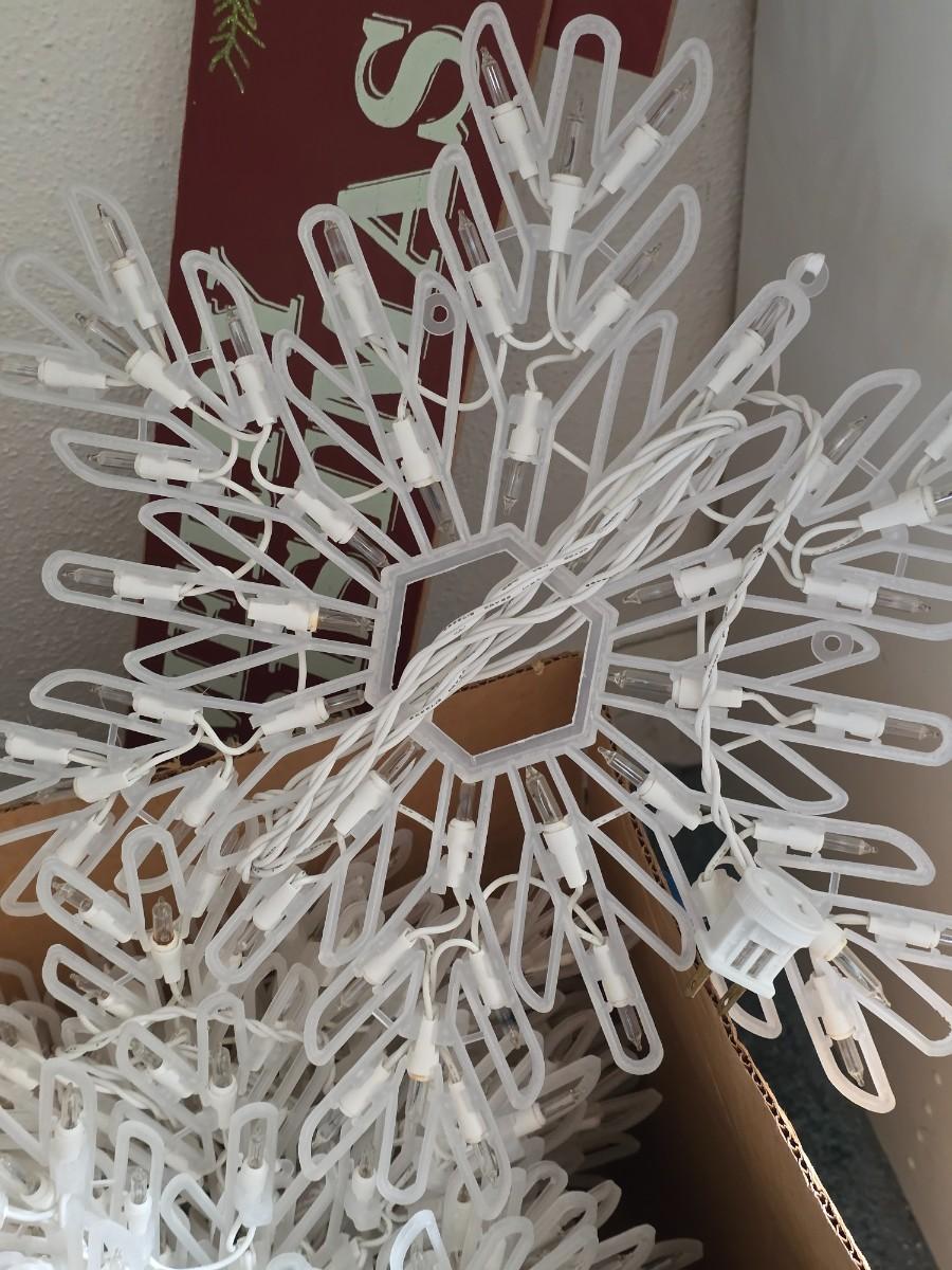 Chriistmas in July/August! Twelve snow flake lights, Merry Christmas sign, garland.