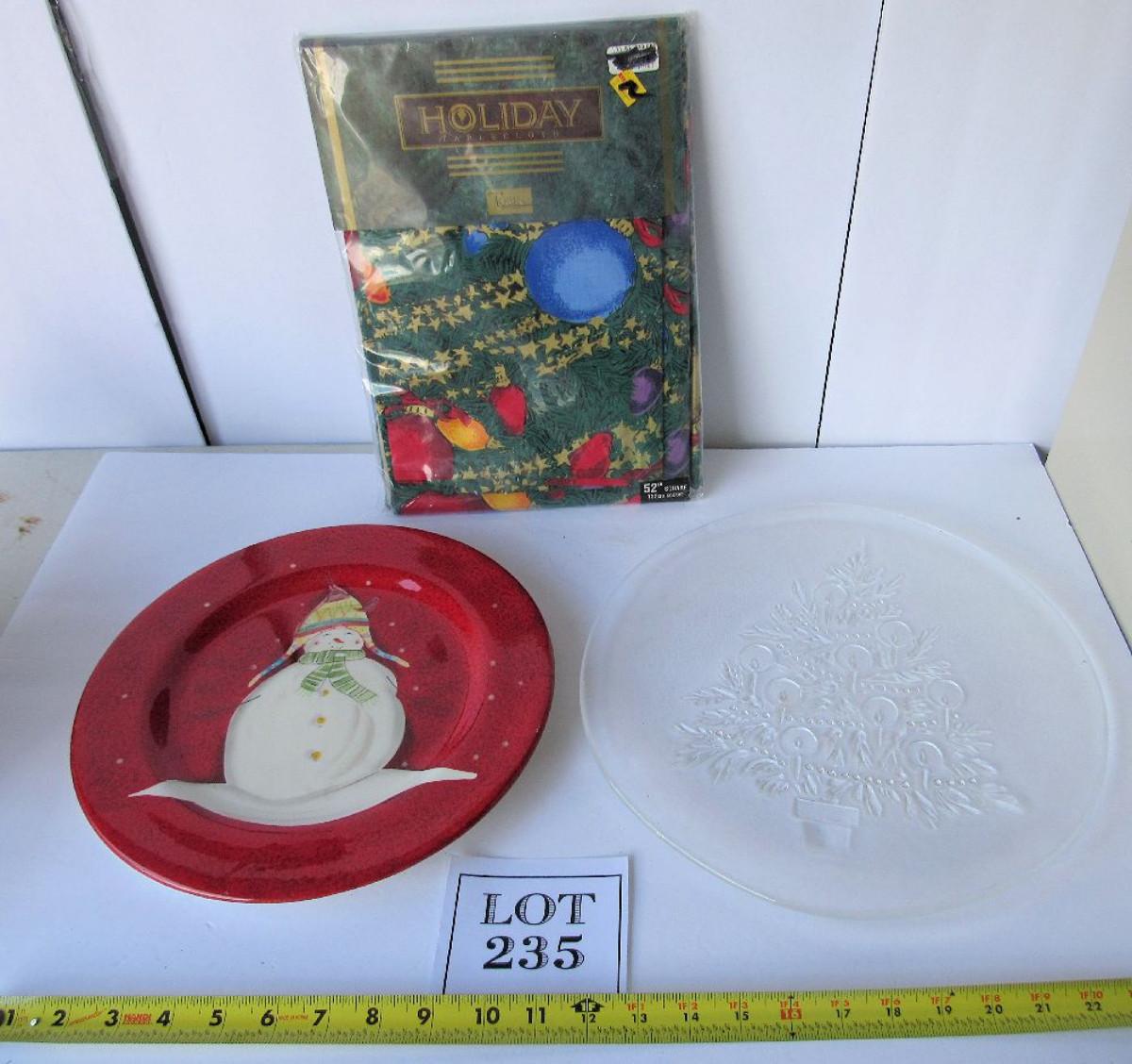Christmas Serving Decor, Unused Tablecloth, Large Platters