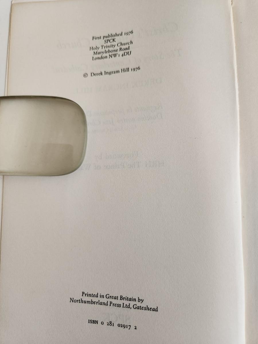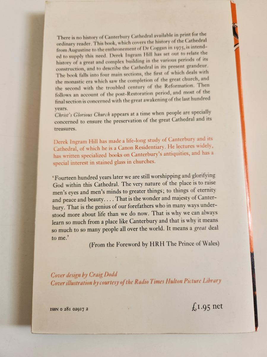 This auction lot is for a copy of the book Christ's Glorious Church by Derek Ingram Hill - Autographed by the author. The book is an account of the story of Canterbury Cathedral in London, England. Northumberland Press, 1976. With 116 pages. This is a paperback book with some underlining of the text. It was a study reference but is in good condition overall.