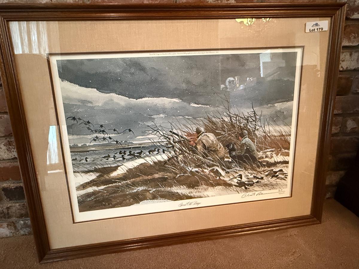 hunting waterfowl art piece as shown from 1985 signed and numbered 219 of 400