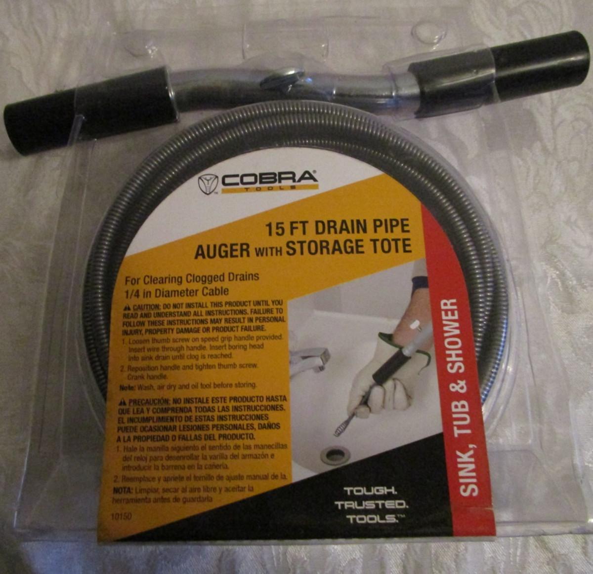 Cobra 15' drain pipe auger