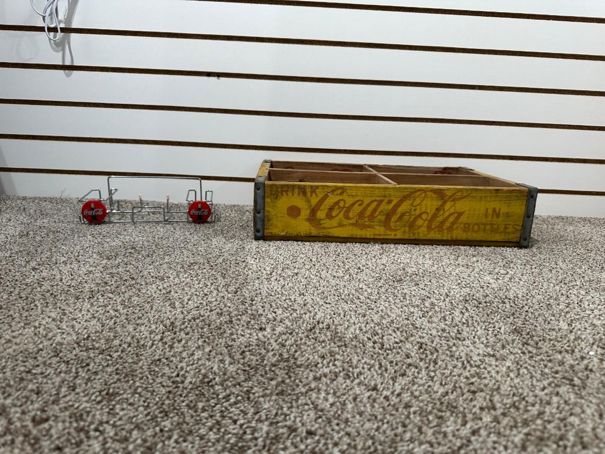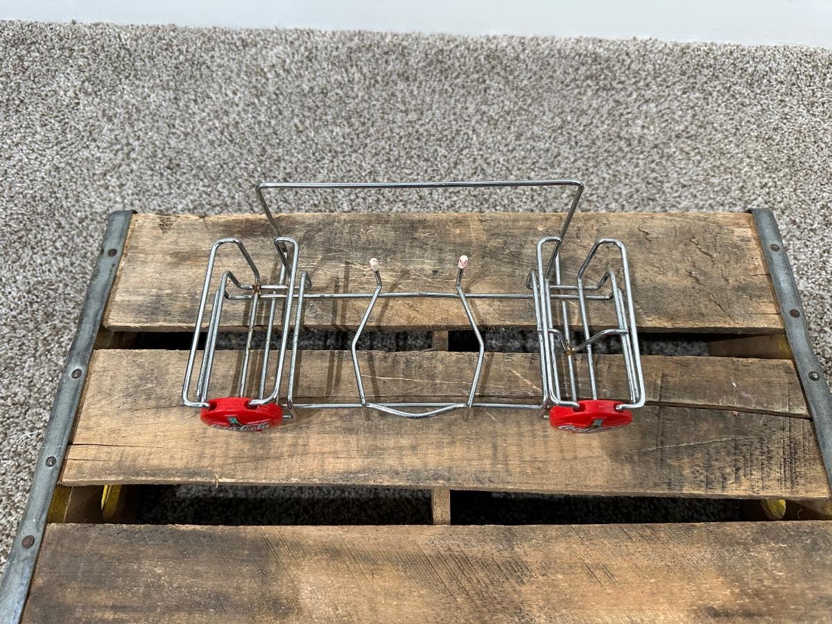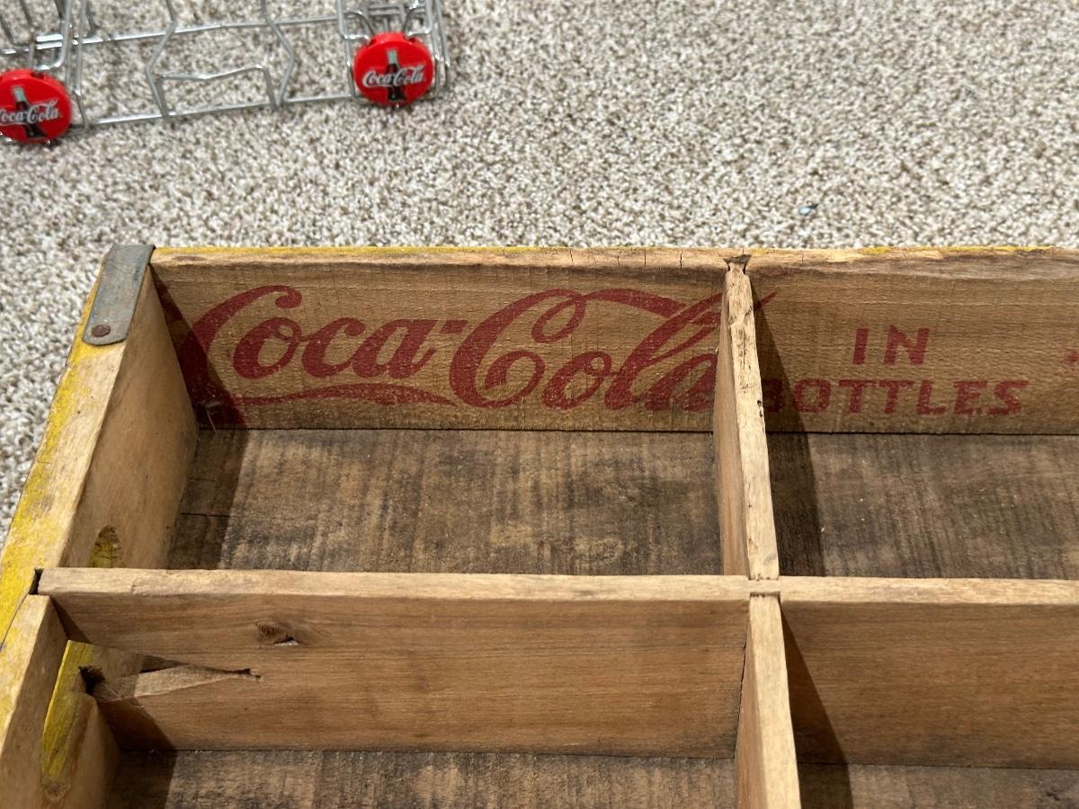 COCA-COLA WOODEN CRATE AND METAL HOLDER