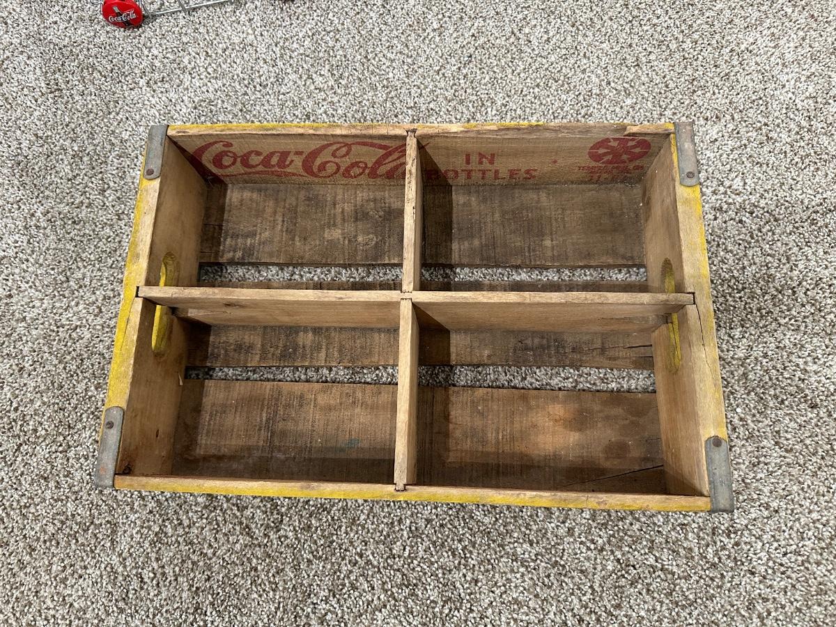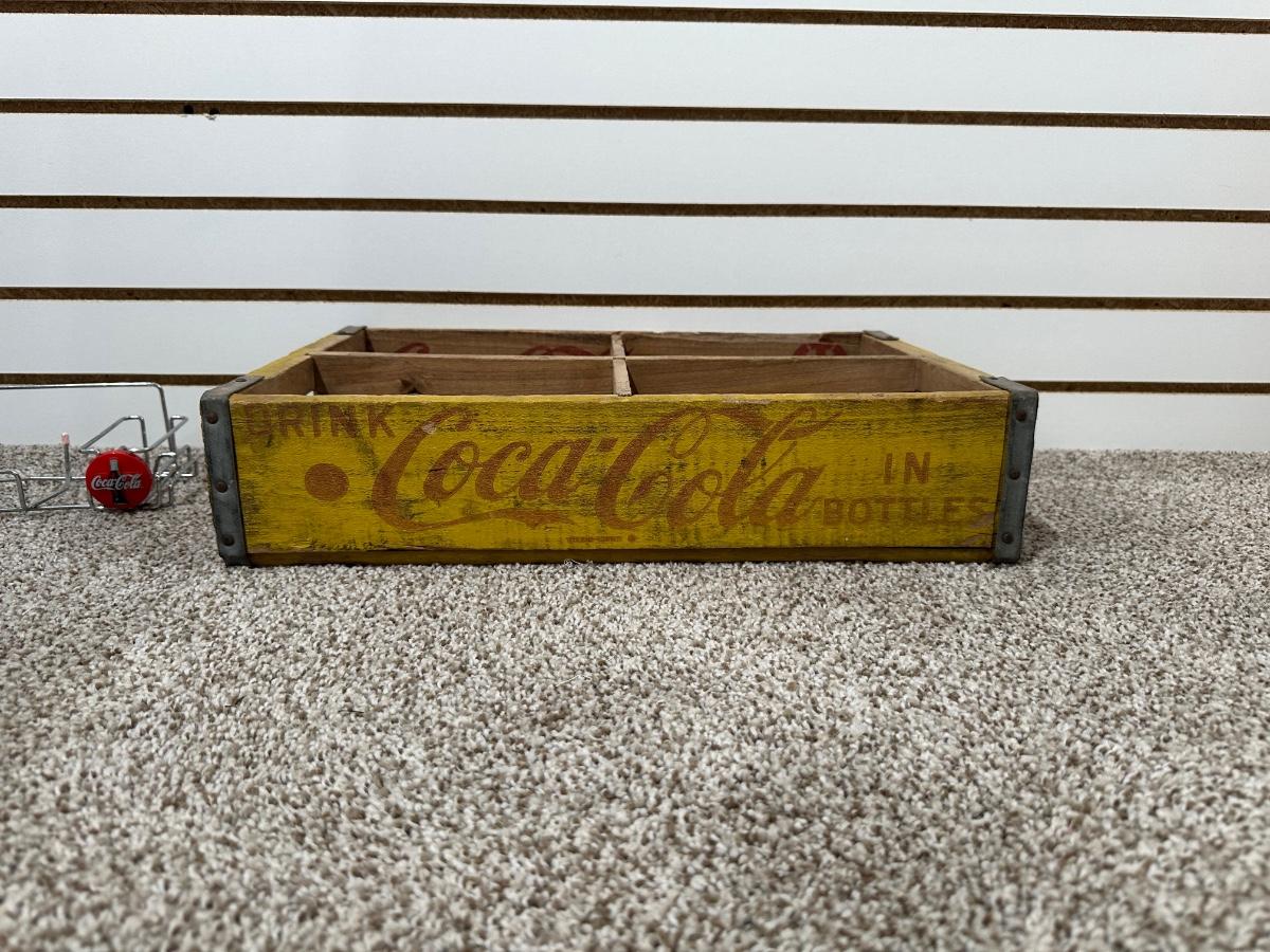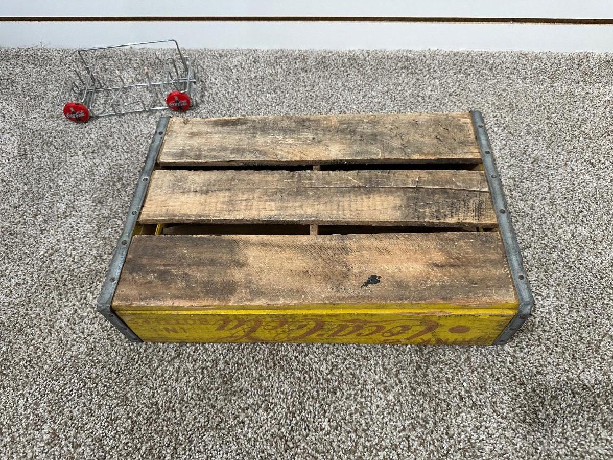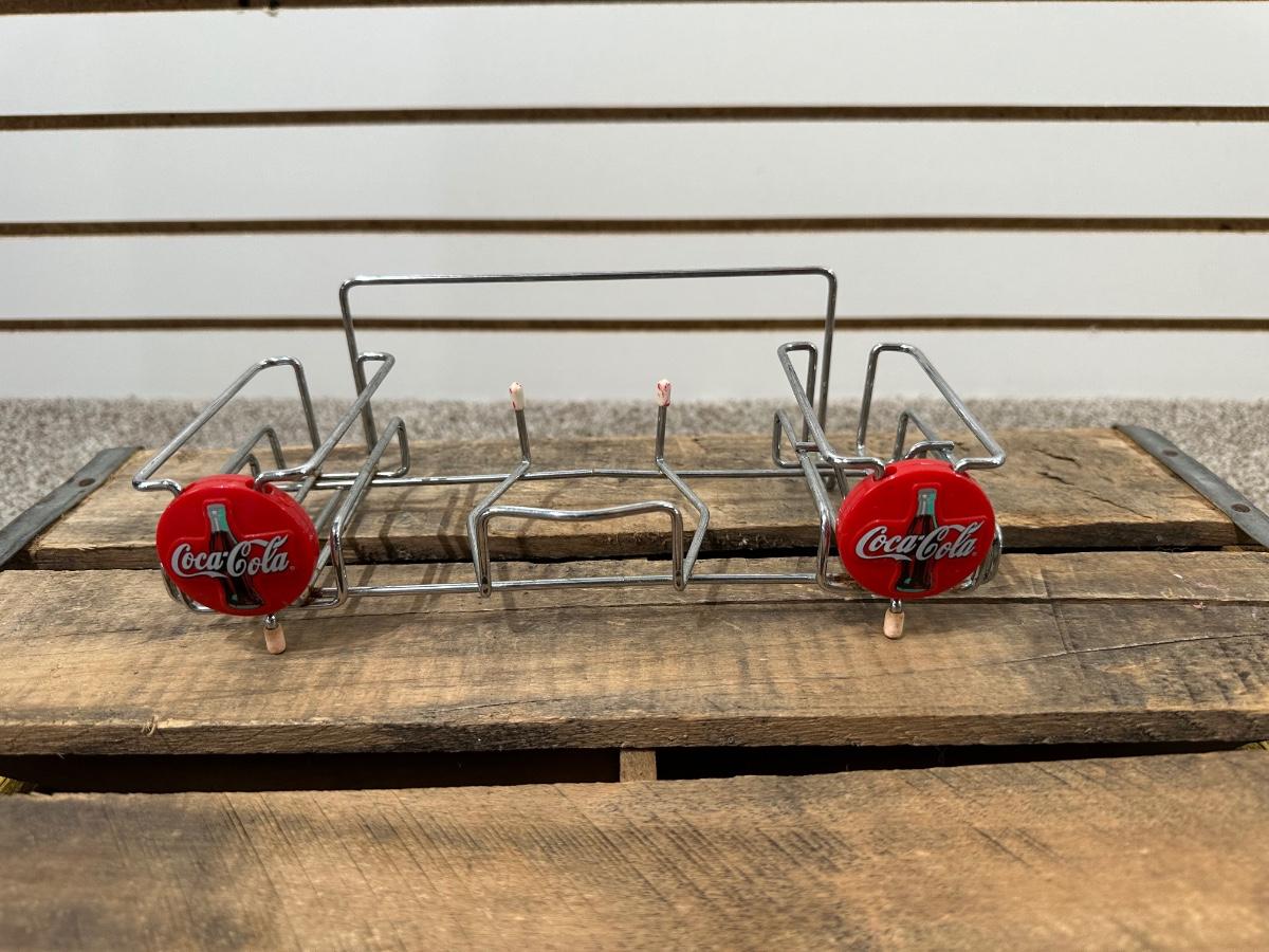 COCA-COLA WOODEN CRATE AND METAL HOLDER