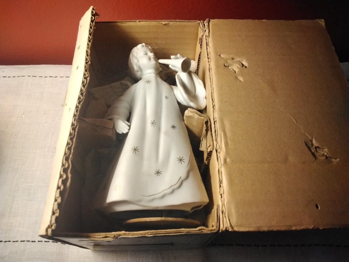 COLLECTIBLE VTG ROTATING MUSICAL ANGEL SILENT NIGHT SCHMID BROS  W/ BOX