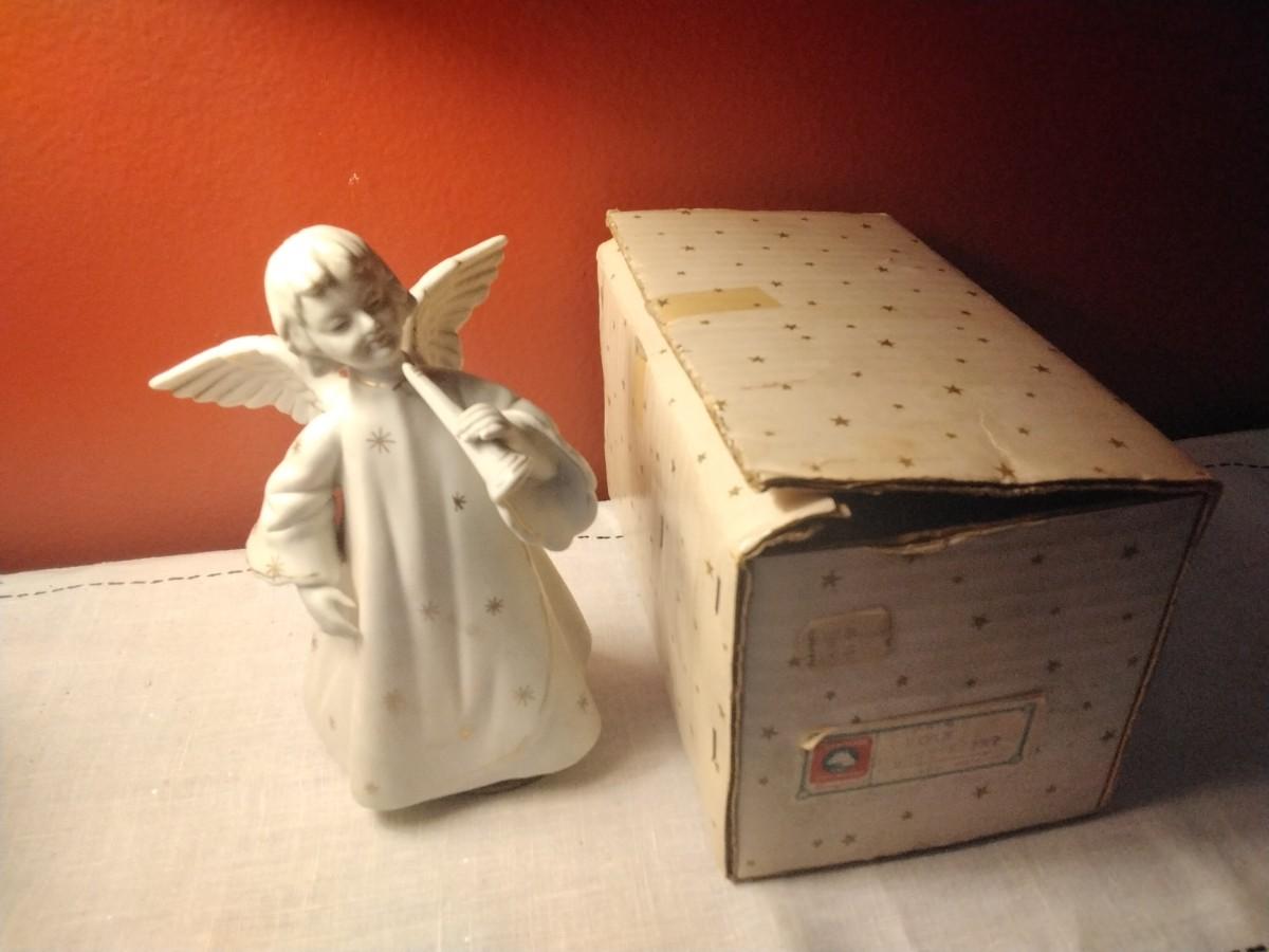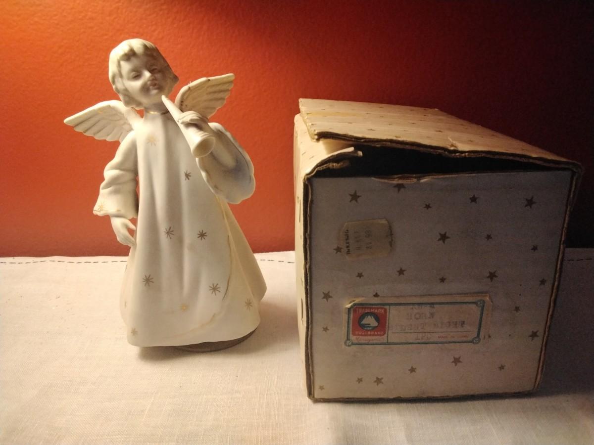 Rare Collectible Vintage Rotating Musical Angel That Plays Silent Night by Schmid Brothers, Inc, Maruyama, a Trademark of Fuji Brand Made in Japan Stamped SCHMID made in Japan. Hand painted ceramic in pristine condition it was kept in the box.