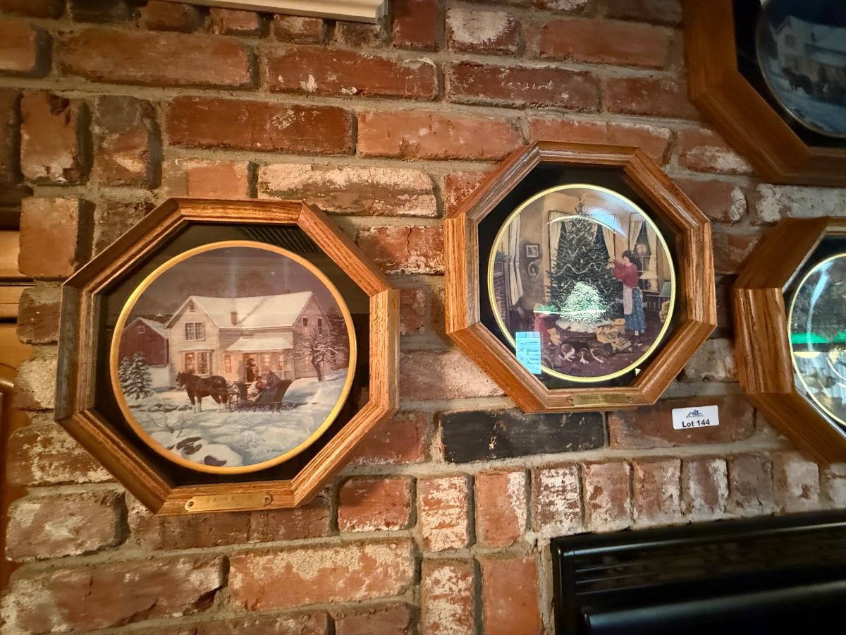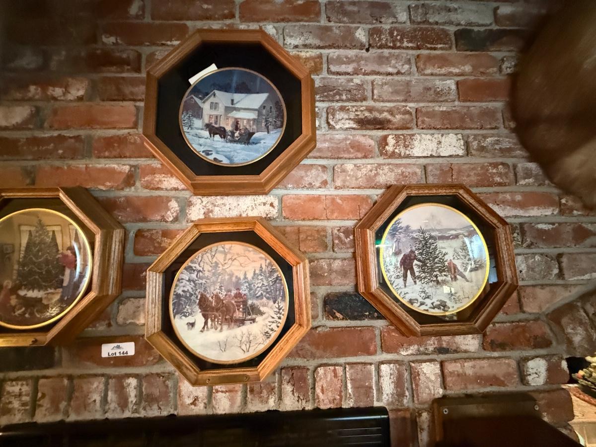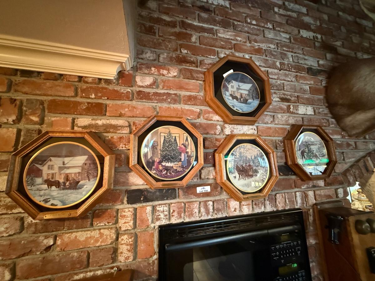 Collection of 5 ceramic plates in wood frames - hanging