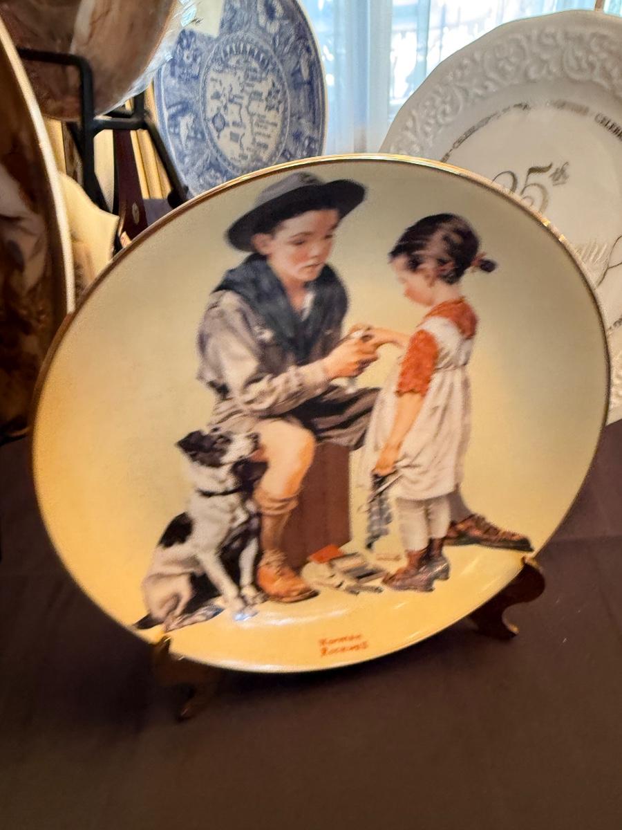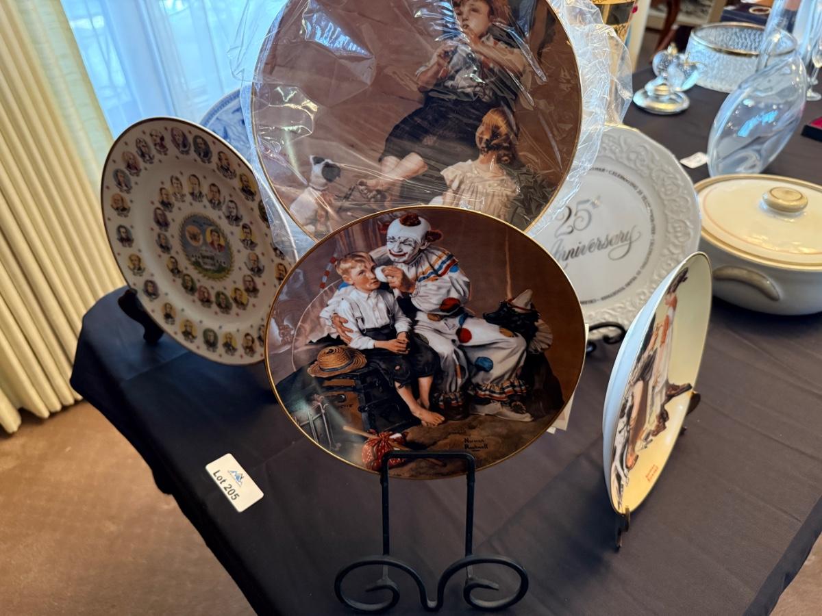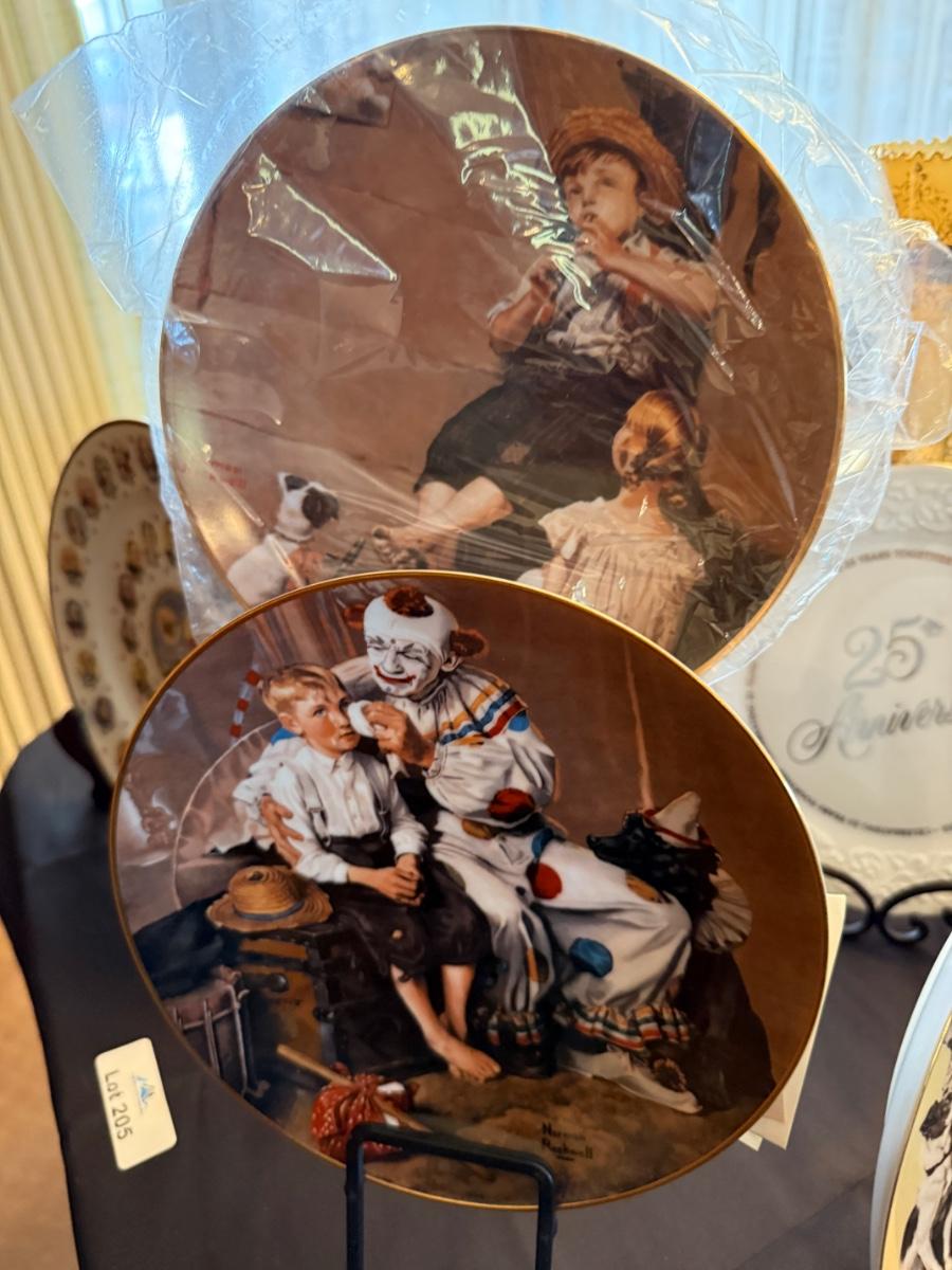 Collection of ceramic collector plates with stands - Norman Rockwell/Clown/25th Anniversary +