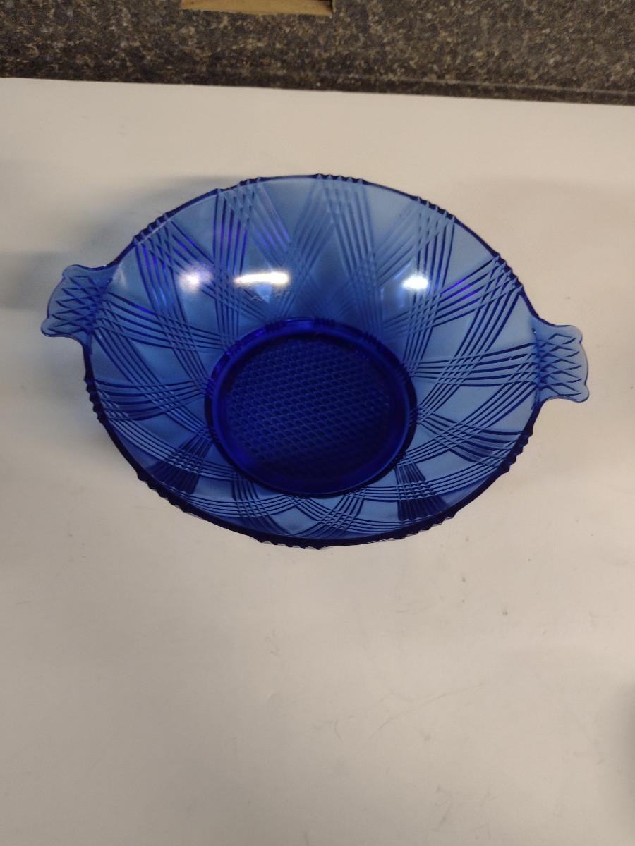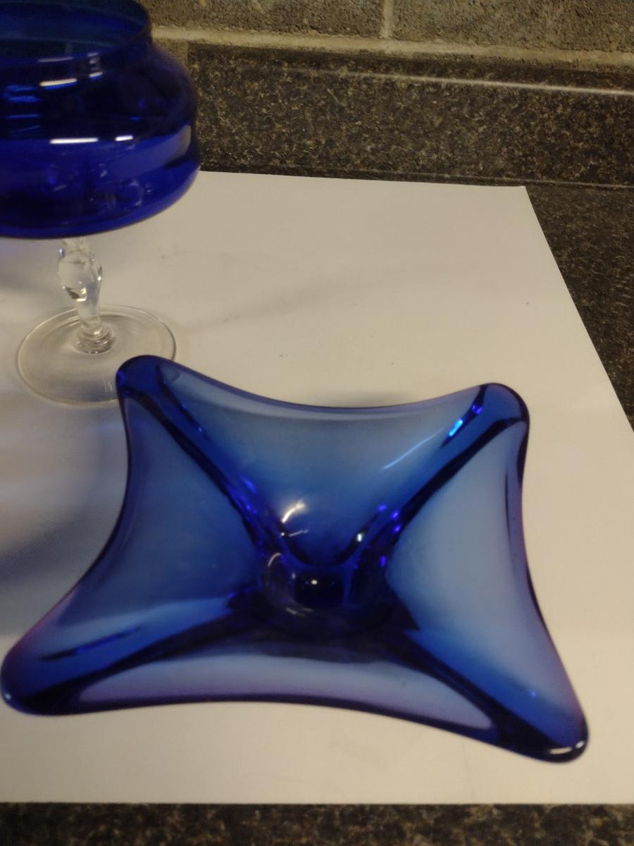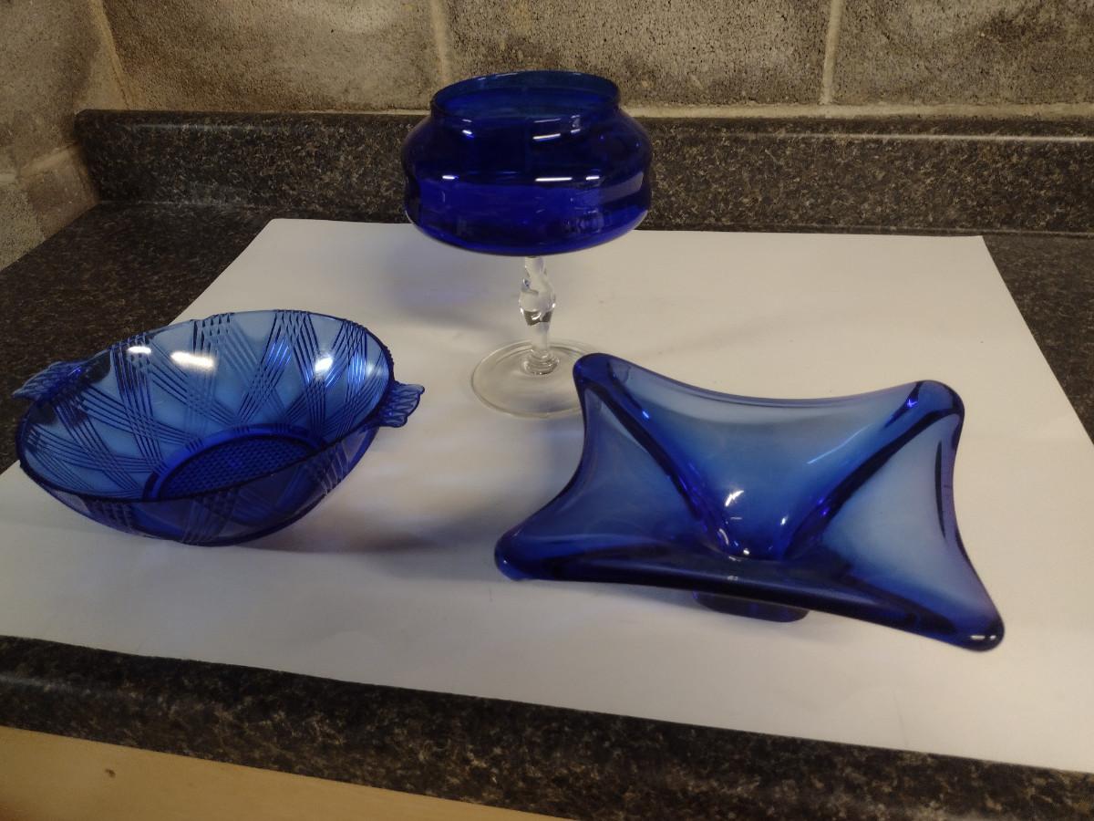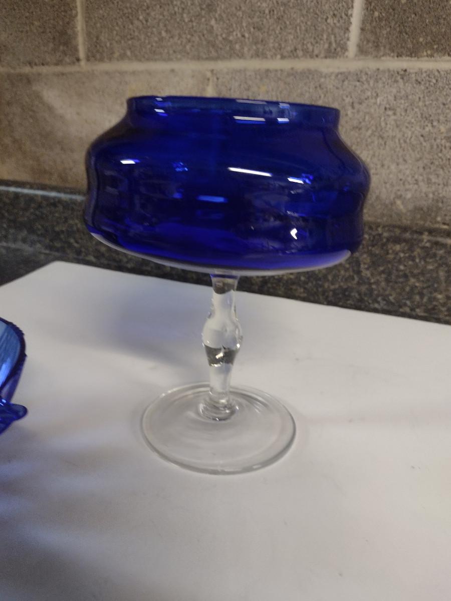 Collection of Cobalt/Blue Glass Pieces. Bowl has small chip- please see all pictures.