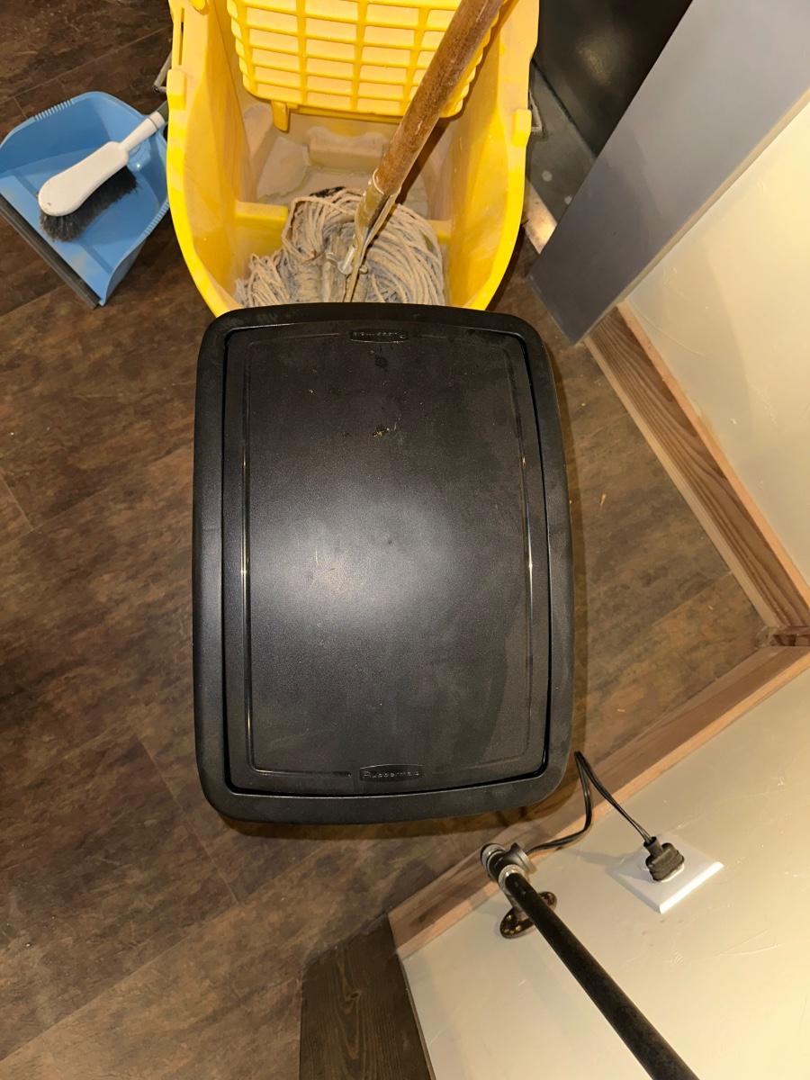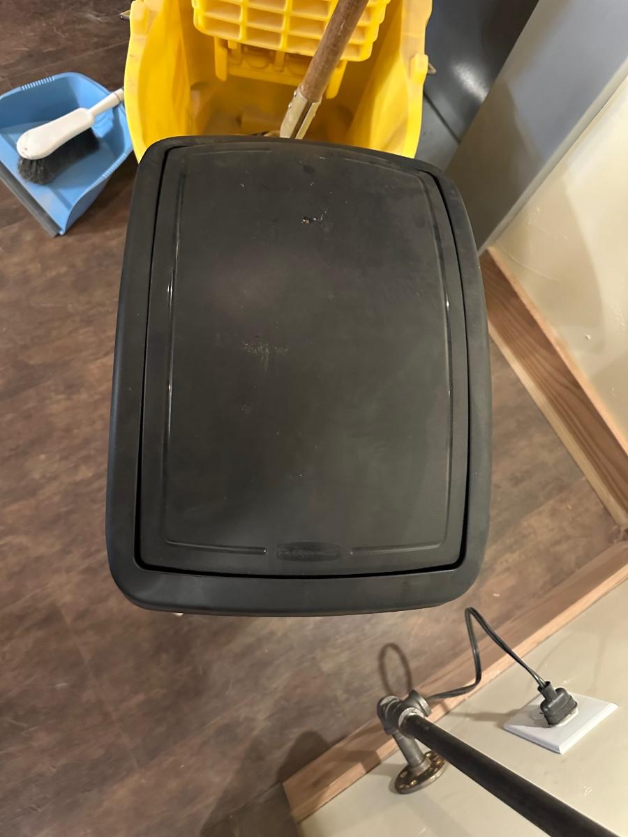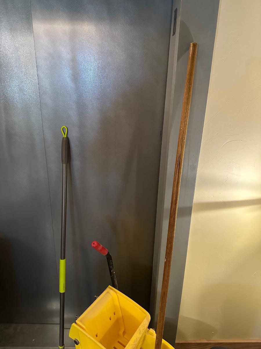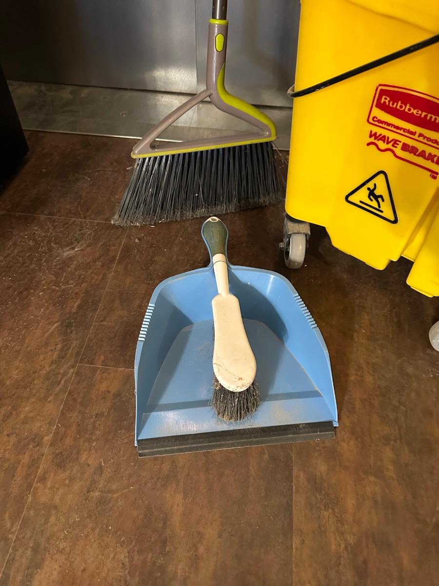 COMMERCIAL MOP BUCKET, MOP, WASTE CAN AND BROOM