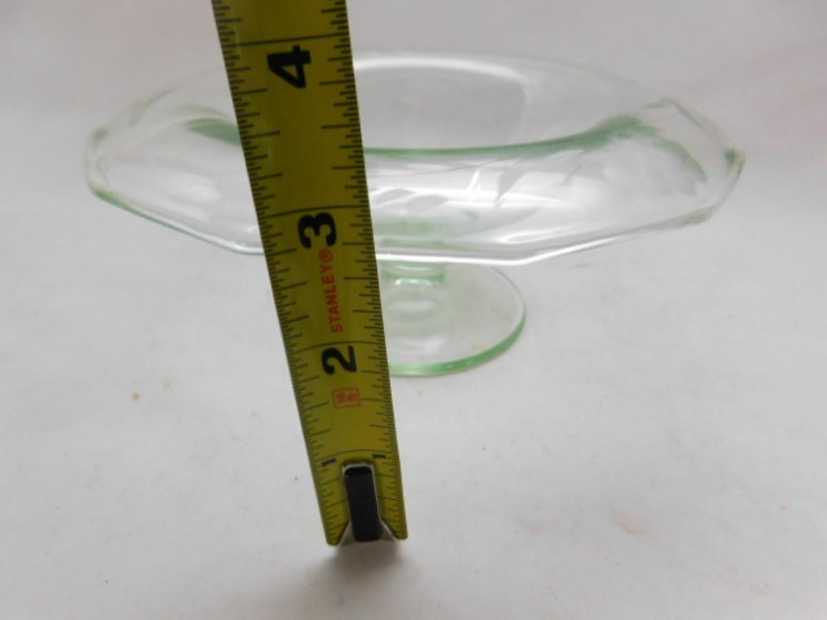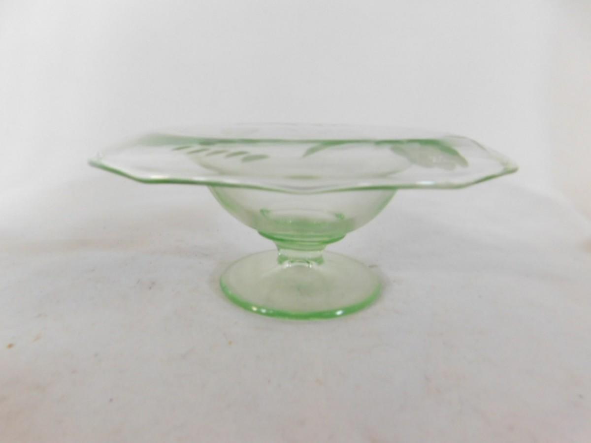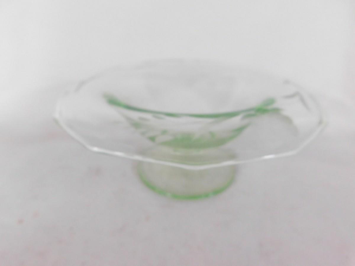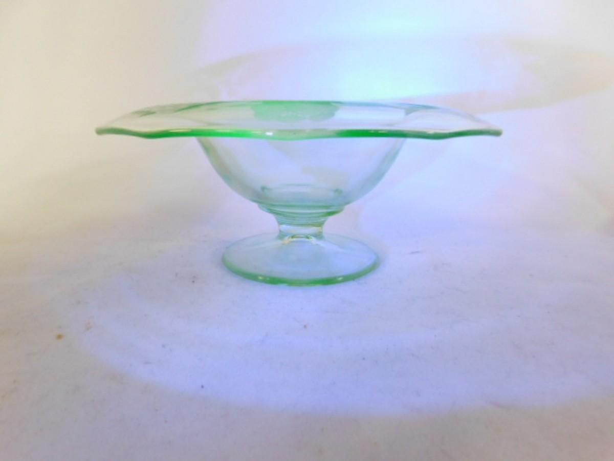 Vintage Rolled Top Pedestal Vaseline Glass Compote Dish