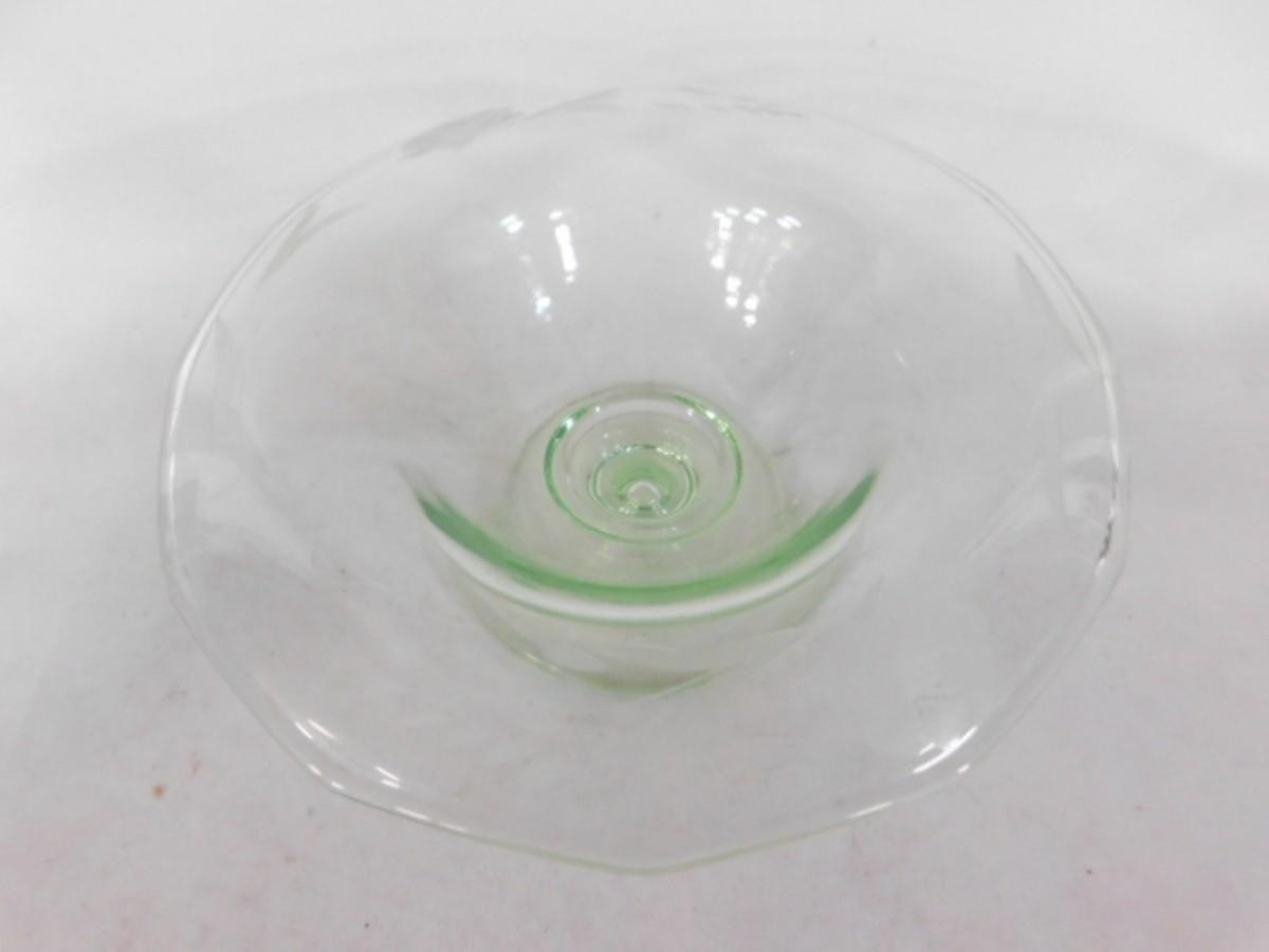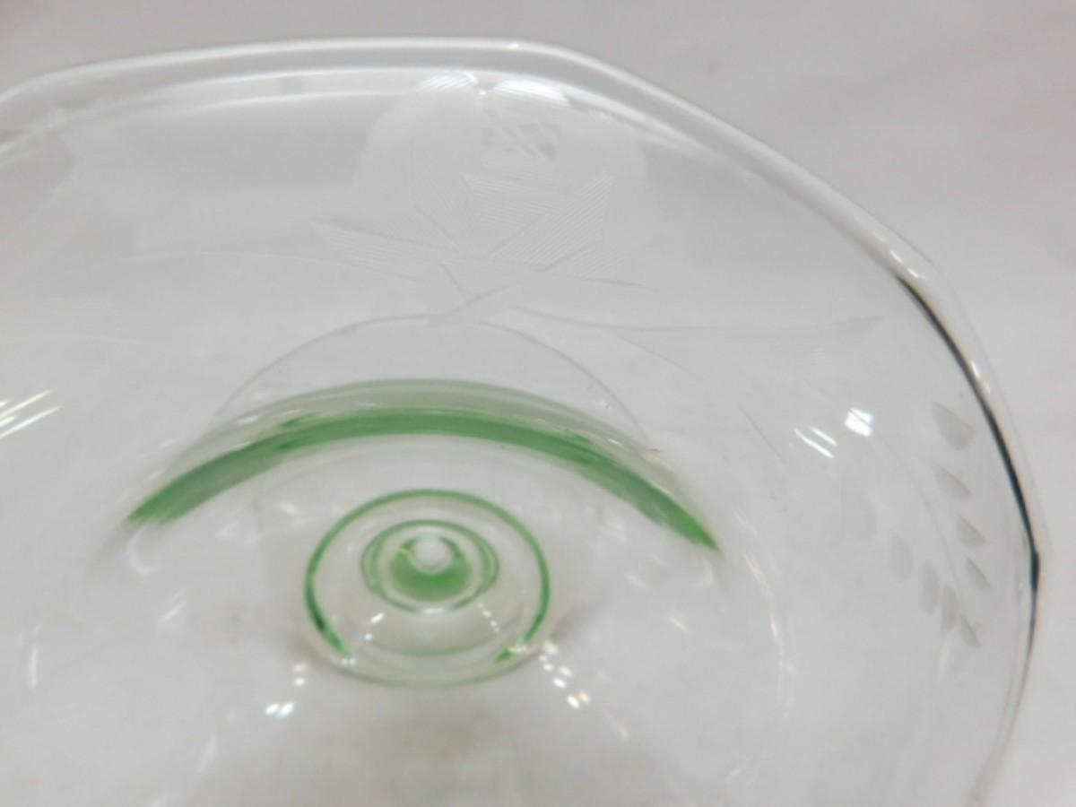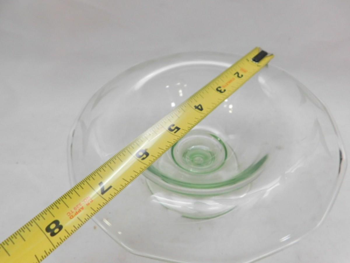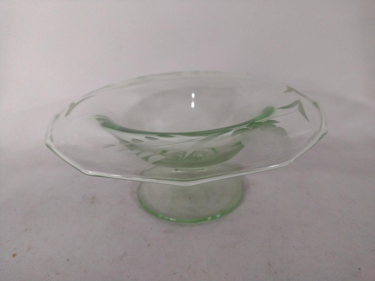 Vintage Rolled Top Pedestal Vaseline Glass Compote Dish