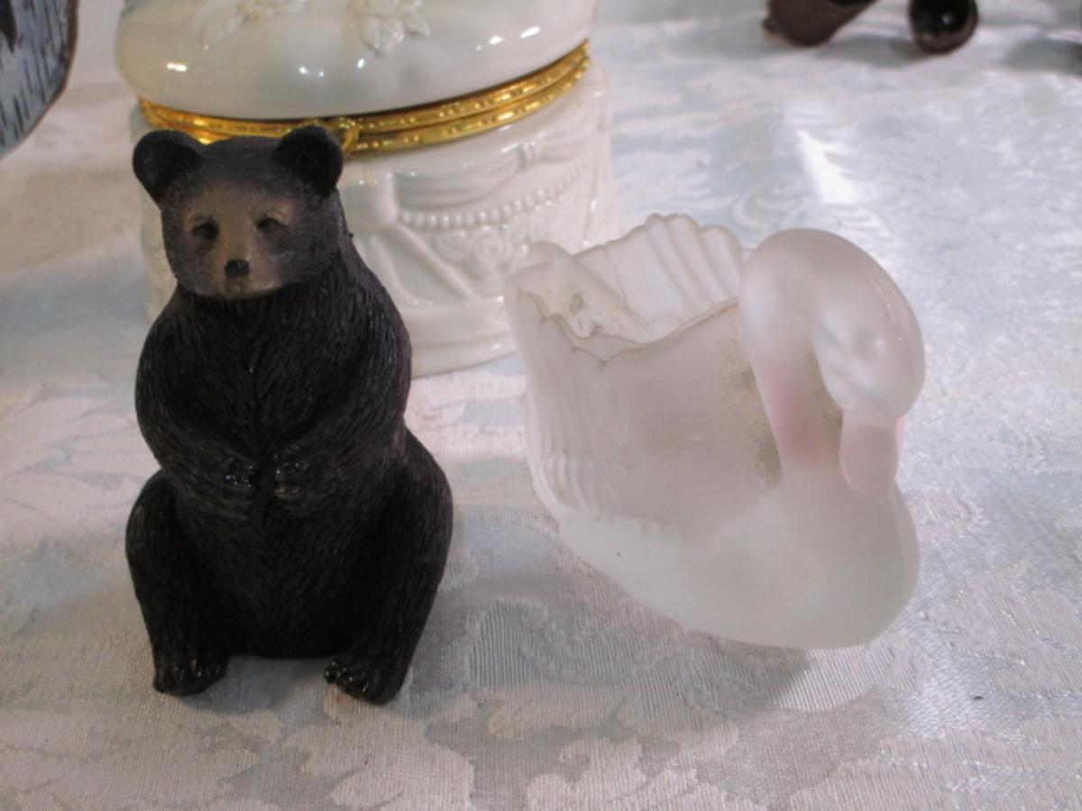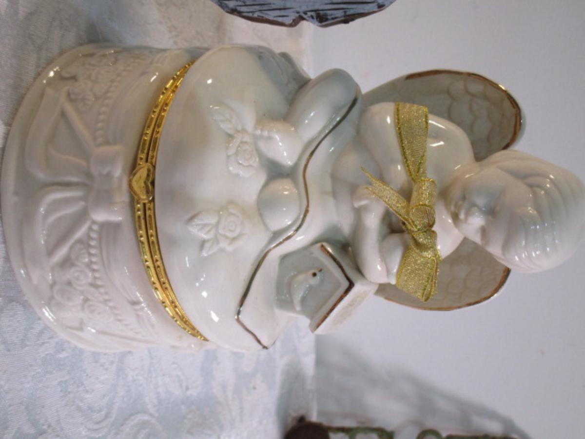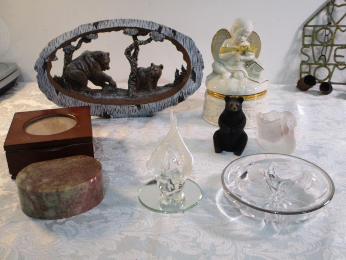 Ceramic angel box, marble box, wood picture jewelry box, Bear décor, swan décor, cut glass candy dish, dispay egg