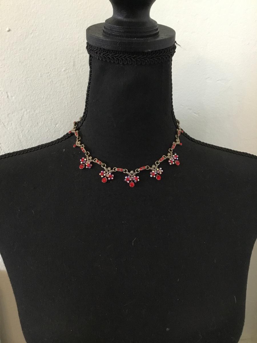Cookie lee, red rhinestone, flower, vintage necklace, very beautiful