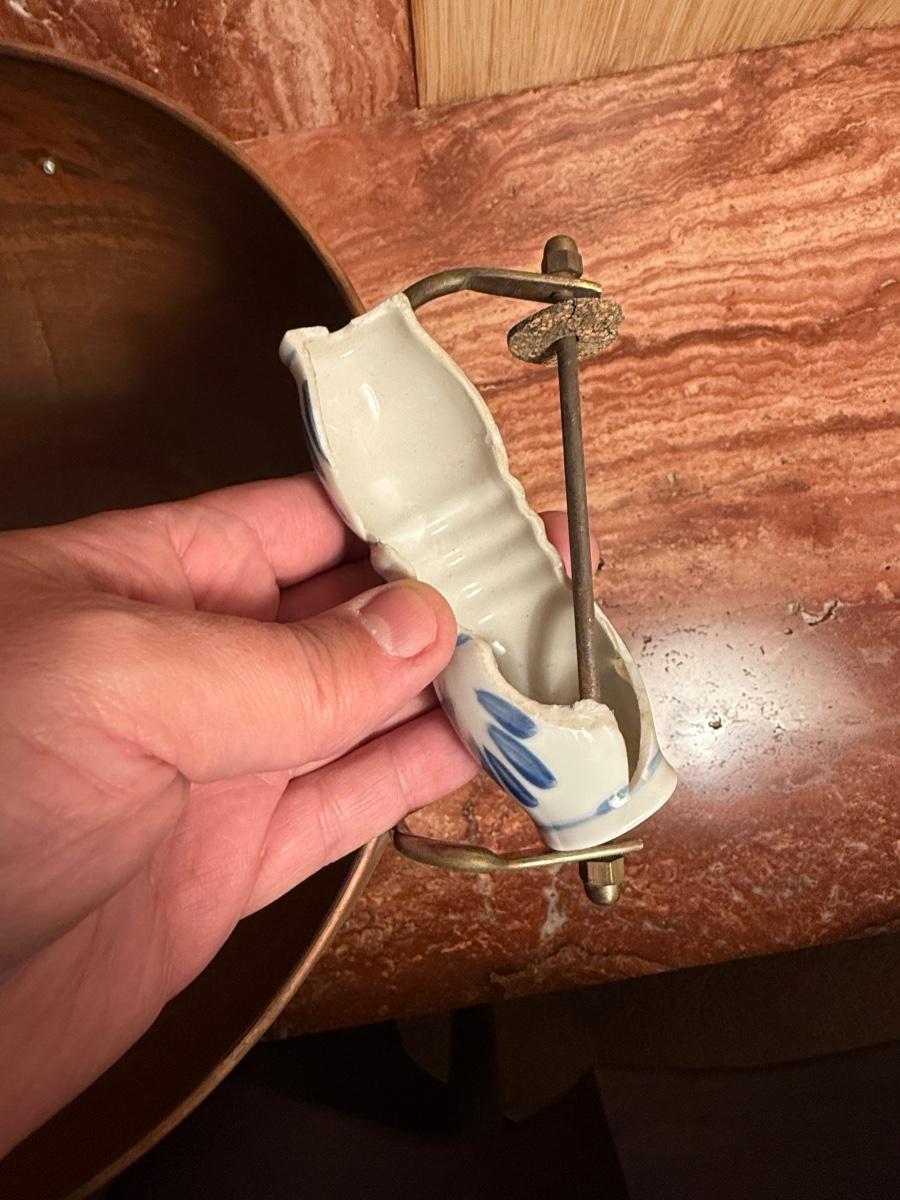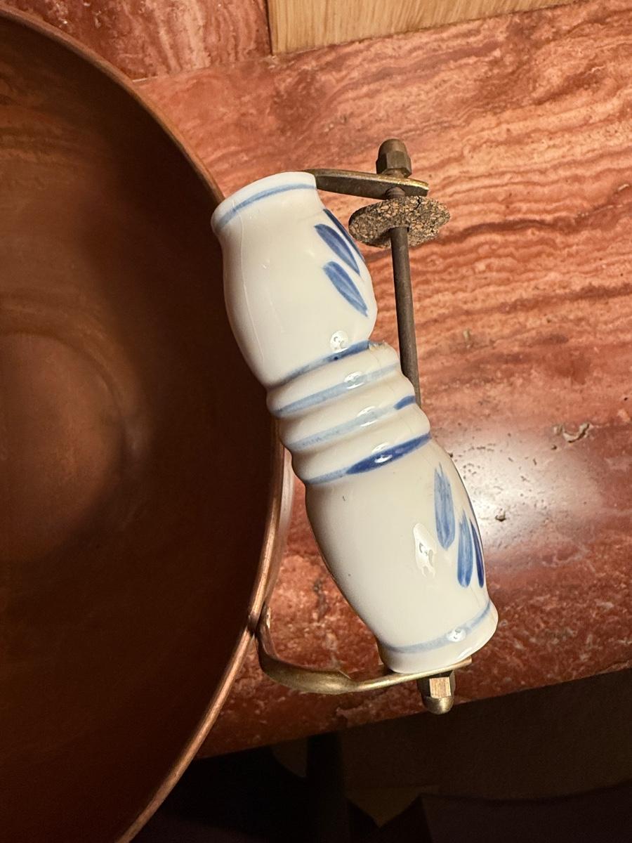 Copper Pot with handle - some damage to ceramic on back handle