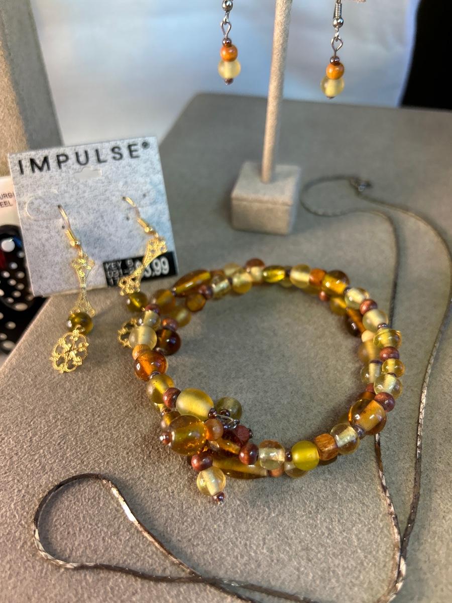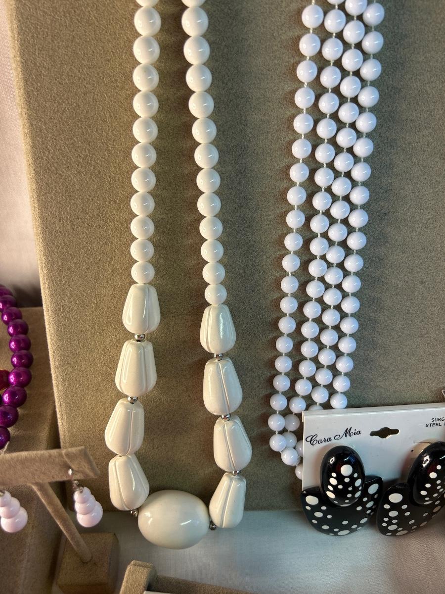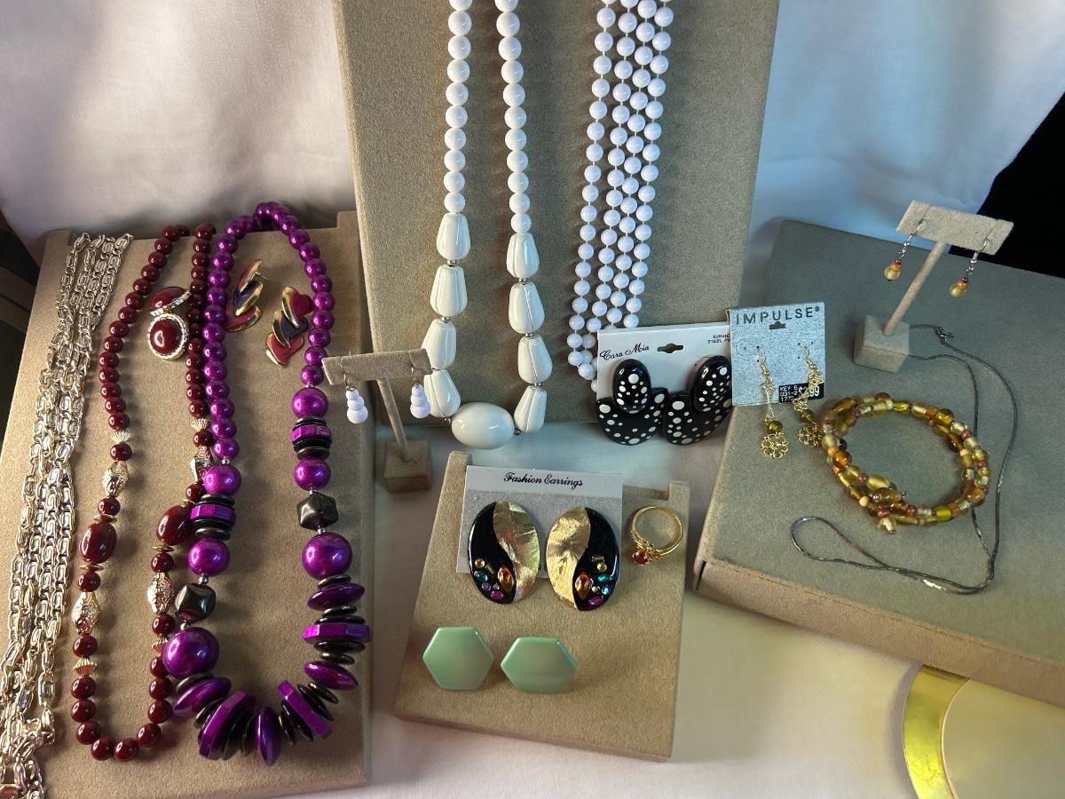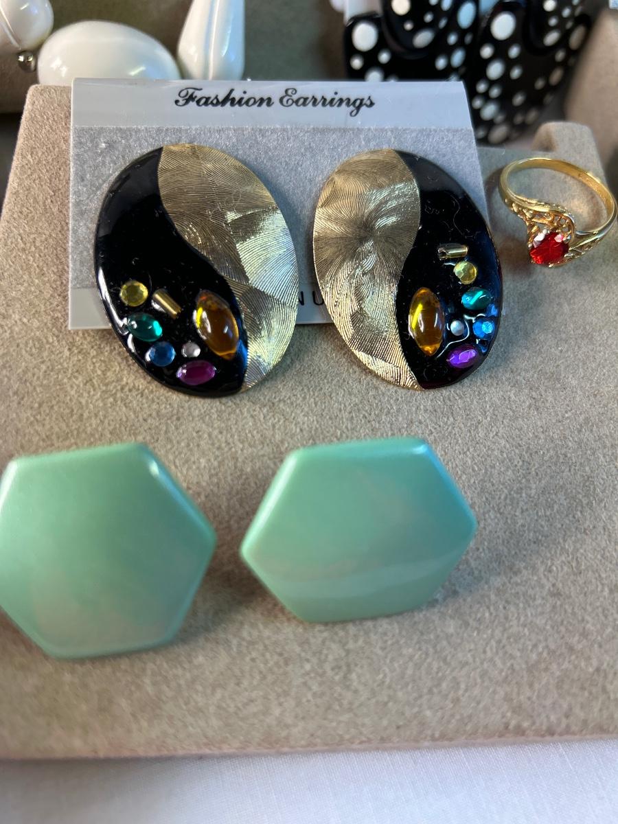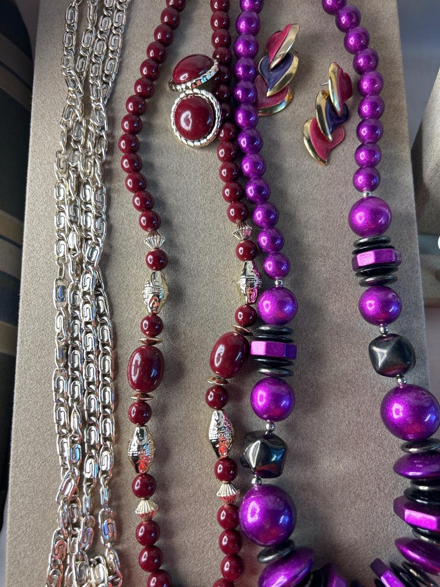 Mostly vintage: 6 necklaces, 8 pierced earrings & the ring seems to be about a size 10.5-11.5.